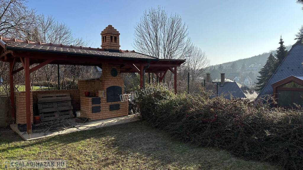 A kert gondozott, kényelmesen lehet megközelíteni az épített kemencét is.