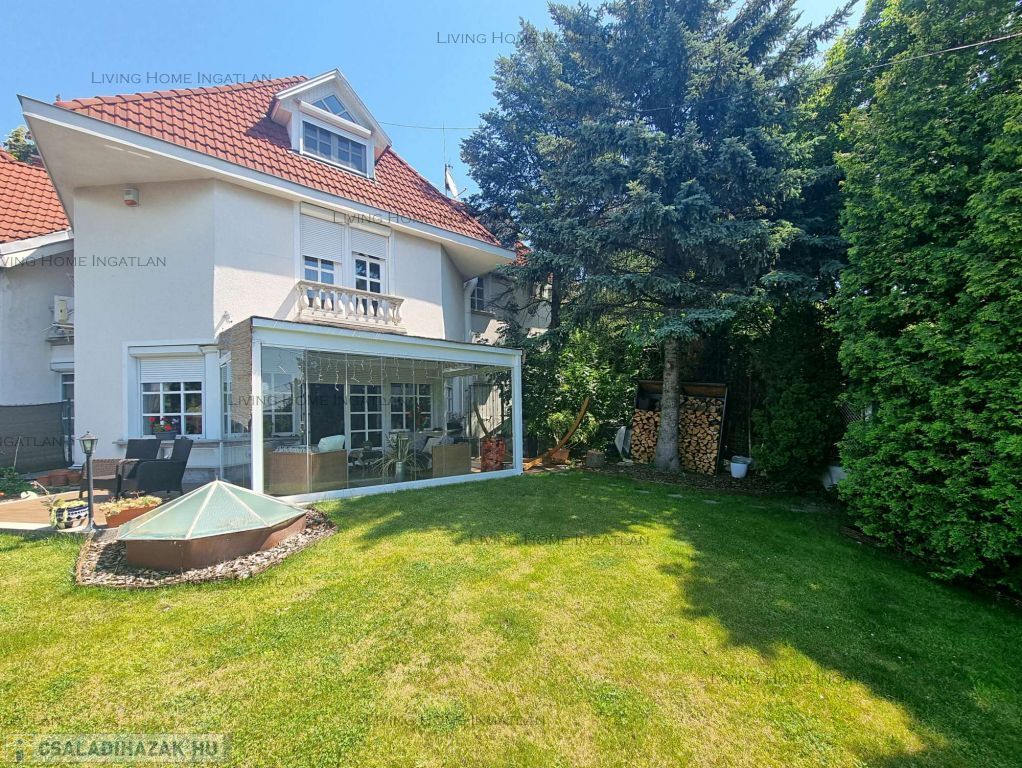 For sale a panoramic, central apartment of a 3 apartment terraced house in Remetekertváros, district II/A in one of the most exclusive, greenest part of the city. The property is located close to a nature reserve and is quiet, unique and has a split-level design. Its most impressive feature is the glazed winter garden with 180 degree panoramic views.