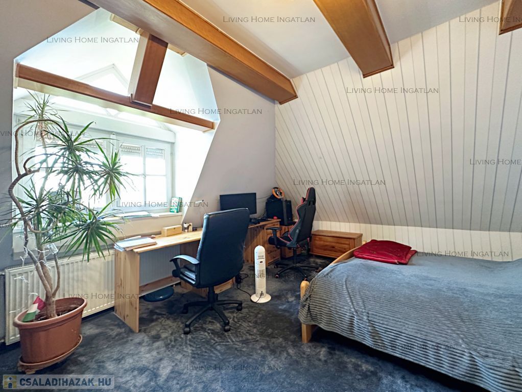 II/A Remetekertvárosban, a város egyik legelőkelőbb, legzöldebb részén 3 lakásos sorház középső, panorámás lakása eladó. A természetvédelmi terület közelében lévő ingatlan csendes, különleges adottságú, szinteltolásos kialakítású. Legimpozánsabb része a 180 fokos panorámával rendelkező, üvegezett télikert.