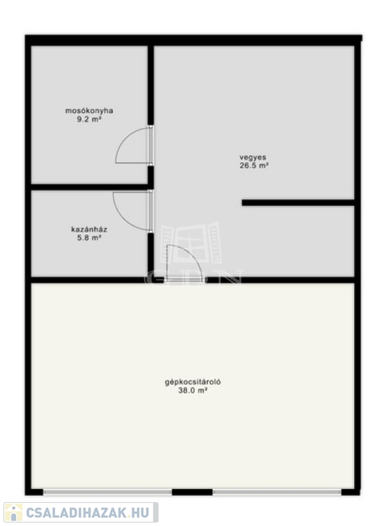 • Alsó szint: hatalmas dupla garázs, tárolók és többfunkciós