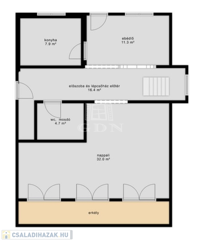 • Földszint: világos, napfényes nappali egyedi elválasztófallal, tágas