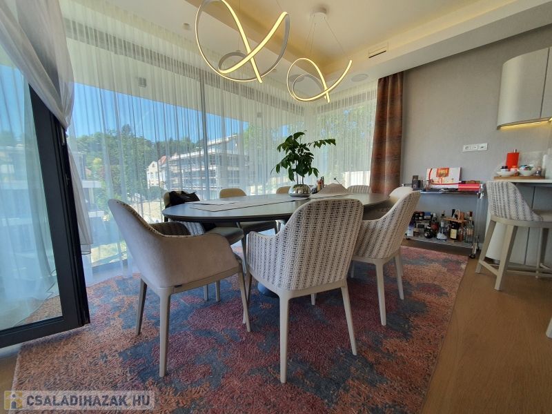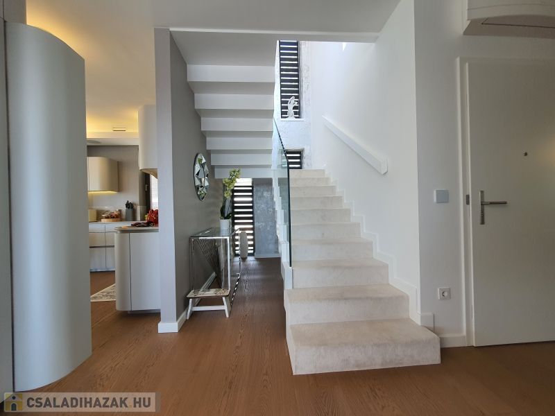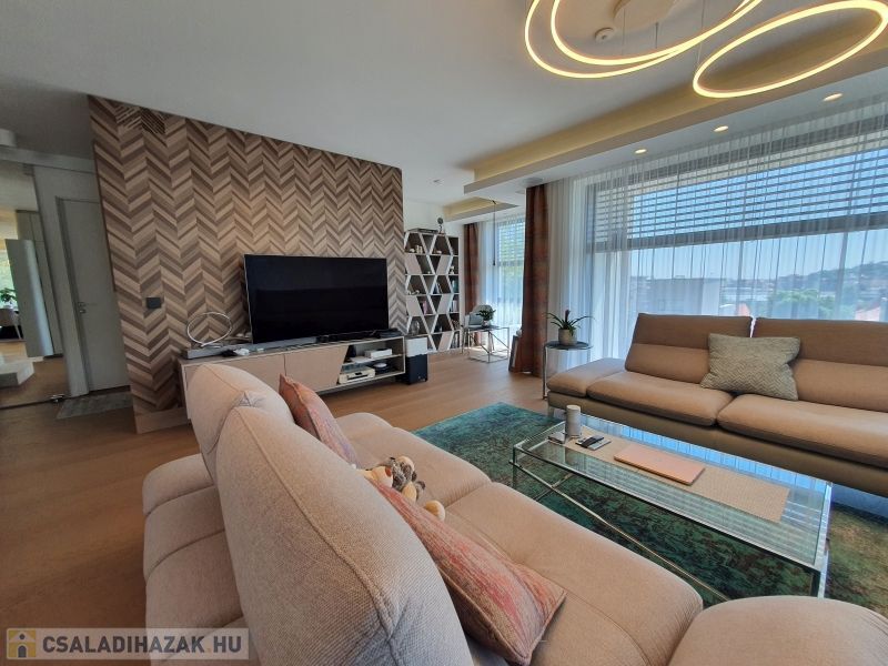 A 600 m2, 3-apartment, panoramic, minimal design luxury villa with elevator, built in 2021 is for sale at 2nd district Rézmál on a 1,005 m2 lot, accessible from two streets, with sophisticated interior design solutions, a 4-space garage.