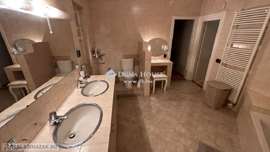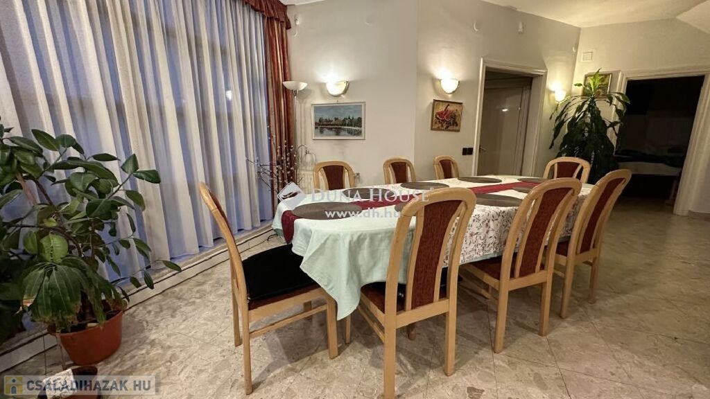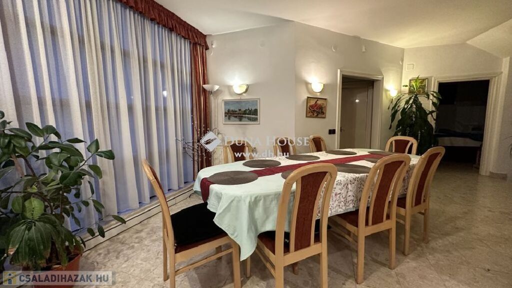 A II. kerületben Pesthidegkúton eladó egy 586 m2-es telken álló 286 m2 -es, 4 szintes,8 szobás, 3 fürdőszobás, nagy teraszos, 2 erkélyes, jó állapotú családi ház. Kiváló lehetőség nagyobb családok számára, több generáció együttélésére számára.A szintek mondhatni külön életterek, kis apartmanként funkcionálnak.Minden szoba külön nyíló!ÉPÜLET ÉS A TELEK JELLEMZŐI:A telek belterületi, szabályos négyszög alakú, felszíne sík, utcafrontja északi.Teljesen körbekerített, füvesített.Az ingatlan összközműves, minden közmű saját mérőórával rendelkezik.A ház az utcafronttól beljebb helyezkedik el.A ház 1997-ben épült, hagyományos építési technológiával.Alapozás: beton sávalapFüggőleges teherhordó szerkezet: tégla falazó elemVízszintes teherhordó szerkezet: monolit vasbeton födémTetőszerkezet: faszerkezetű, kontyolt nyeregtetőTetőfedés: beton Bramac cserépfedésKülső falfelület: dörzsölt vakolatBelső padlóburkolat: kerámia és parkettaFűtés és meleg vízellátás: házközponti rendszerű, gázkazánról működik.Nyílászárók külső: faszerkezetű, hő és hangszigetelt üvegezésselKülső és belső ajtók: faszerkezetű, festett kivitelbenA lakók és az épület biztonságát riasztó felügyeli.Az ingatlan per-teher és igénymentes.Az épület 4 szintes:igazán jó beosztású, szép, jó tágas terekkel rendelkező ingatlan- Alagsor:-. háztartási helyiség-. Kazánház-. Tároló-. Barkács helyiség-. közlekedő-. szerszám tároló 20 m2- Földszint:- Nappali -társalgó 56,2 m2- Étkező 18 m2- Konyha 9,1 m2- Vendégszoba 13 m2- Fürdő +WC 5,74 m2- Gardrób +kamra 4,08 m2- Előszoba 4,5 m2- Fedett terasz 20 m2- Emelet 1 szint:- Szoba 21,8 m2- Szoba 15,9 m2- Szoba 19,27 m2- Gardrób 6,08 m2- Fürdő +WC 12,16 m2- Társalgó 17,5 m2- WC 1,3 m3- Zuhanyzó 3,1 m2- Gardrób 1,85 m2- Erkély 12 m2- Emelet 2. szint tetőtéri:- Szoba 14,8 m2- Szoba 13,8 m2- Szoba 25,38 m2- Tároló3,2 m2- Fürdő +WC 6,9 m2- Közlekedő 9,5 m2- Erkély 12 m2- Gardrób 4,83A kert gondozott, kényelmesen lehet megközelíteni az épített kemencét is.A vételár részét képezi a gépesített konyhabútor, valamint a beépített szekrények.LAKÁS JELLEMZŐI:A ház bejáratán belépve az előtéren át egy igen tágas tér fogad minket, mivel egy légtérben található a Nappali-társalgó, és az étkező, kissé elválasztva a konyha (melynek használatát kamra is segíti). Minden szoba külön nyíló! A szintek mondhatni külön életterek, kis apartmanként funkcionálnak.A teret tágítják és napfényessé teszik a nagy tolóajtók / teraszajtók, amelyen át a teraszra illetve a kertbe juthatunk. Ezen a szinten is megtalálunk még egy hálószobát, valamint egy zuhanyzós fürdőszobát+ WC-t, és egy gardróbot is.Az emeletre a kényelmes lépcsőn juthatunk fel, ahol szintén tágas társalgó helyiség fogad minket. Ezen a szinten még 3 külön nyíló szoba, mindennel felszerelt fürdő +WC, és egy zuhanyzó és külön WC, valamint két gardróbszoba, és egy erkély került kialakításra.A tetőtéri szinten pedig, szintén 3 külön nyíló szoba, fürdőszoba +WC, tároló, gardrób és közlekedő, és egy erkély található.A ház alsó szintjét a kazánház, a háztartási helyiség, barkács helyiség és a tároló foglalja el.Az alagsori szinten van még egy szerszámtároló is.HÁZ MÉRETEI:A ház teljes területe 286 m2, amit növel a 20 m2 nagyságú kertkapcsolatos terasz., amely tavasztól - őszig kellemes pihenési lehetőséget biztosít a család számára.PARKOLÁS:A parkolás a ház előtti felszíni autóbeállóval jelenleg 2 autó számára megoldott, további autók parkolására van lehetőség a telek bejárata előtt az utcán.INGATLAN HELYSZÍNE:Az ingatlan Budán, a II. kerület Pesthidegkút-Ófalu városrészen, családi házas, csendes övezetben épült, szilárd burkolatú úton jól megközelíthető, de nyugodt környék, infrastruktúrával jól ellátott.Gépkocsival hamar elérhetjük Budakeszi, Solymár bevásárló- és szórakozási, kirándulási lehetőségeket kínáló helyeit, pár percre a Francia Iskola.A Széphalom Bevásárló központ, a Stop Shopnak percek alatt elérhető. Sétatávolságra iskola, óvoda megtalálható.A tömegközlekedést használókat több buszjárat segíti, a Solymárra menő 64-es, 164-es és 264-es buszokon kívül mind az 57-es és a 257-es körjáratok is jól elérhetőek.A hűvösvölgyi végállomásról mind a Széll Kálmán tér, mind a Móricz Zsigmond körtér, de akár Óbuda központja is gyorsan, átszállás nélkül megközelíthető.Éjszakai járattal (956-os, 964-es) akár a Belvárosból is egyenesen hazaérhetünk.A környéken sok a kirándulóhely, kellemes jó nyugodt, csendes kertvárosi környezet!Érdeklődésével és megtekintési szándékával várom megtisztelő hívását!