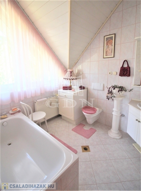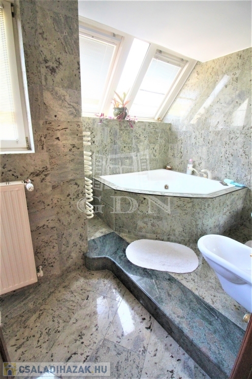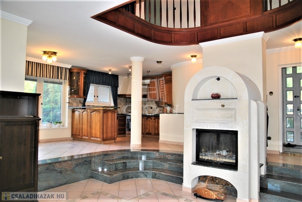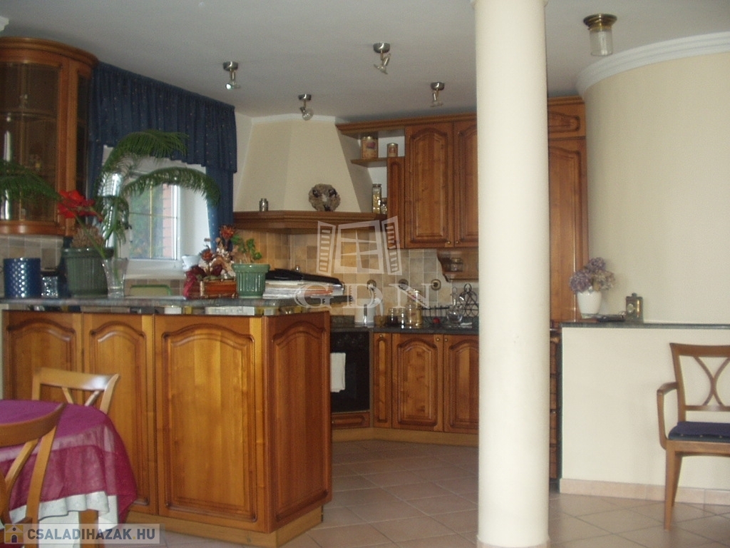 Műszaki tartalom ( részlet ): 40 cm vastag tégla + valódi klinkertégla burkolat, bramac betoncserép, 25 cm üveggyapot + fólia hőszigetelés, kerámia, gránit, parketta burkolatok, egyedi fa falburkolat, kamerás - távfelügyelethez bekötött biztonsági videórendszer, FŰTHETŐ garázs LEHAJTÓ, medence ( fűthető, víztisztító rendszerrel, ellenáramoltatóval egyaránt felszerelt ), padló és radiátor fűtés, központi porszívó, kandalló, hang-, és hőszigetelt műanyag nyílászárók, biztonsági fólia, szúnyoghálók, elektromos redőny, reluxa, beépített részben gépesített konyha mindkét lakásban, beépített szekrények, szemet gyönyörködtető csillárok, stb.