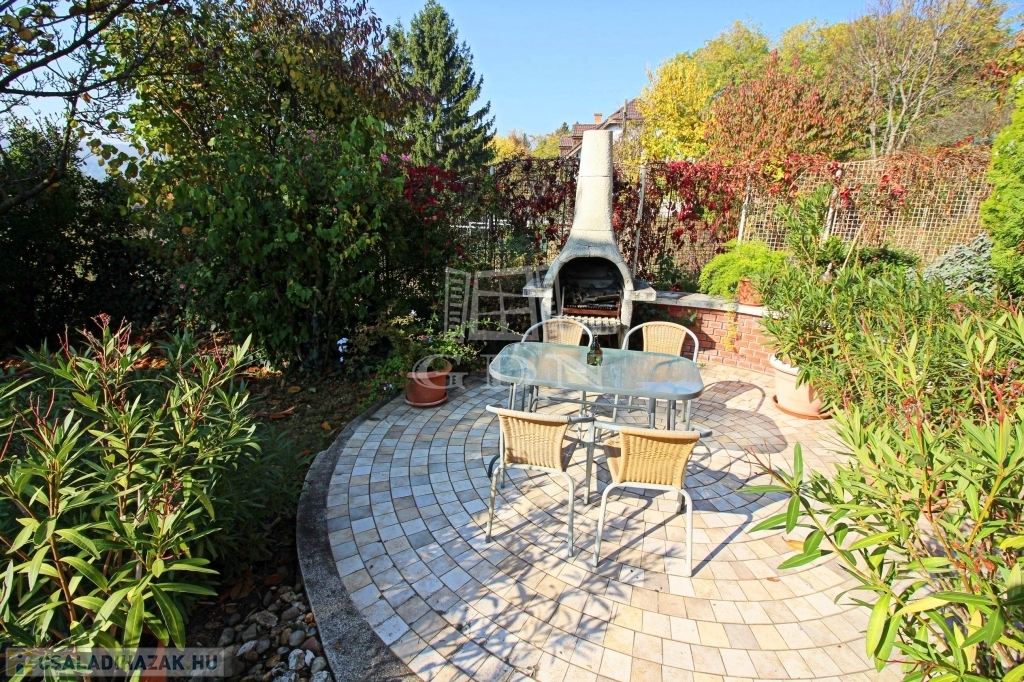A kertben grillsütő, nyári konyha- tároló, napozó rész.