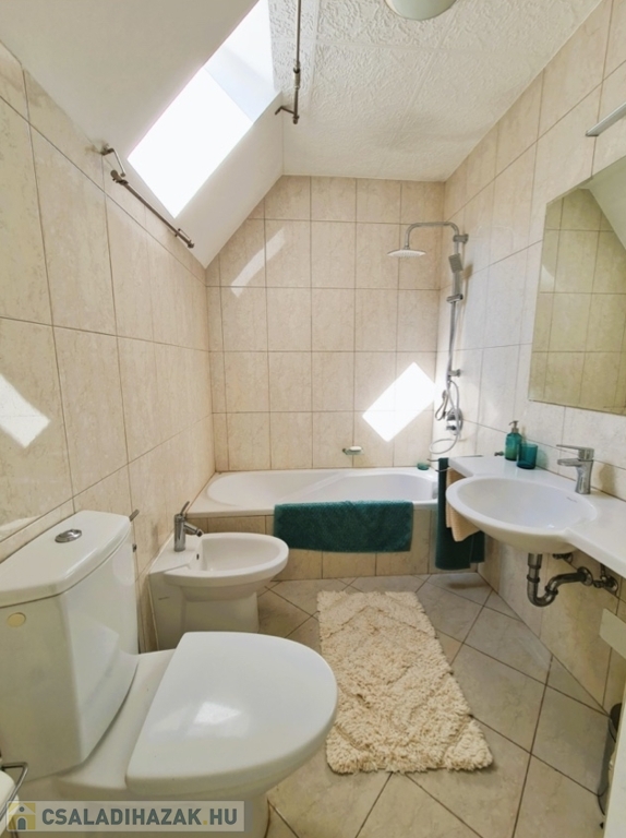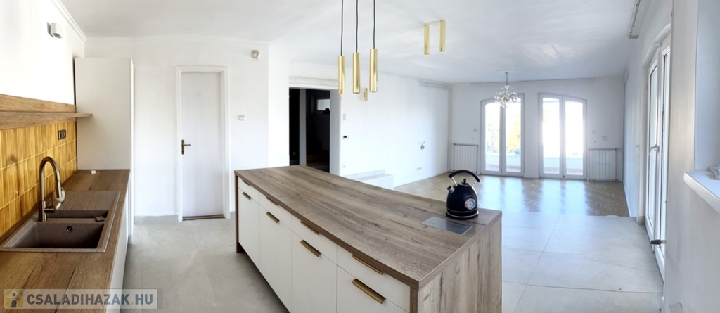 Egy teljeskörűen felújított 180 négyzetméteres, számított alapterületű, nappali+3 hálószobás elrendezésű, ikerház felet kínálunk eladásra. A házrész átgondolt elrendezésű, számos tároló helyiséggel ellátott, garázsában egy autó számára kialakított hellyel. A felújítás során az épület szigetelést kapott a nyílászárók kicserélésre kerültek, a konyha és a fürdőszoba is teljesen megújult.