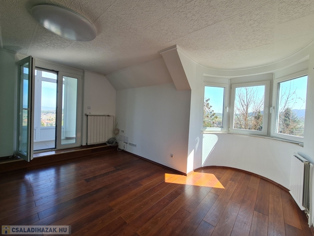 Az épület alsó szintjén helyezkedik el a tágas 50 négyzetméteres közös élettér, a konyha, az étkező, egy fürdőszoba és a nappali, melyhez panorámás erkély és egy kis kertkapcsolatos télikert kapcsolódik. Az emeleti szinten 3 hálószobát és 1 fürdőszobát találunk, ezek közül két szobának panorámás erkélye a harmadiknak pedig hangulatos kertkapcsolatos terasza van a hátsó kert felé. Az ingatlanhoz tartozó telekrész jól kihasználható, de mérete miatt könnyen rendben tartható.
