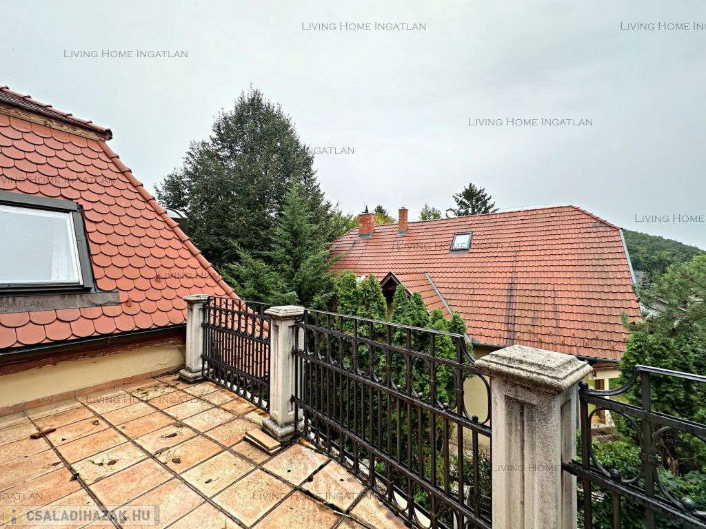 Csendes, családi házas környezetben, közel a természethez eladó egy 270 nm-es lakóterű önálló családi ház. A teljes alsó szint ebben a négyzetméterben nincs benne. Az ingatlan alkalmas akár vállalkozás telephelyének is, hiszen az udvaron több gépkocsi is kényelmesen parkolhat. A házban egyébként egy jóga-stúdió működött, kihasználva az alsó szint lehetőségeit. A 716 nm-es parkosított, nagy fákkal körülvett kert és a magasabban lévő terasz kellemes, nyugalmas helyet biztosít a pihenésre, baráti összejövetelekre.