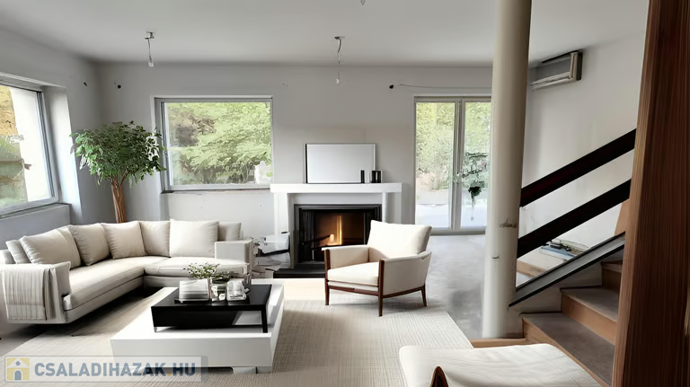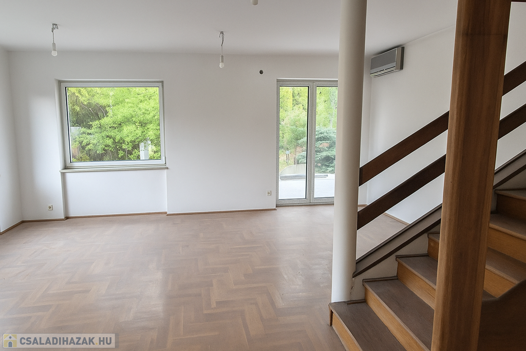 2025-ben generális felújításon áteső klimatizált ikerház mindkét fele eladó, nagy méretű kerttel és kiváló alaprajzzal. Az ingatlan igény szerint saját belső medencével is kialakítható.