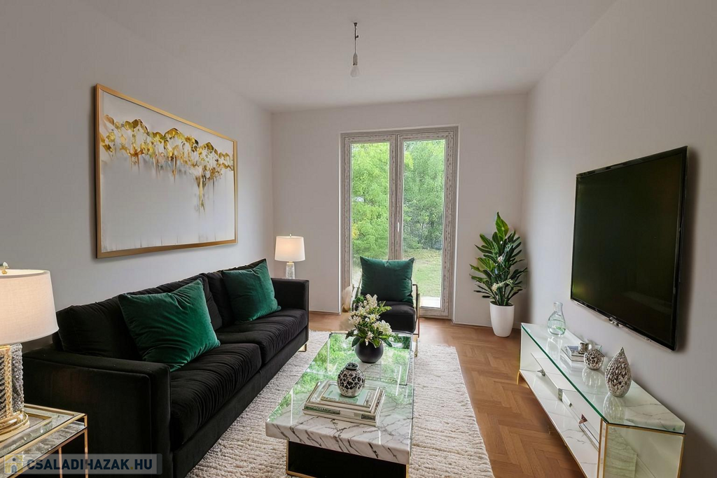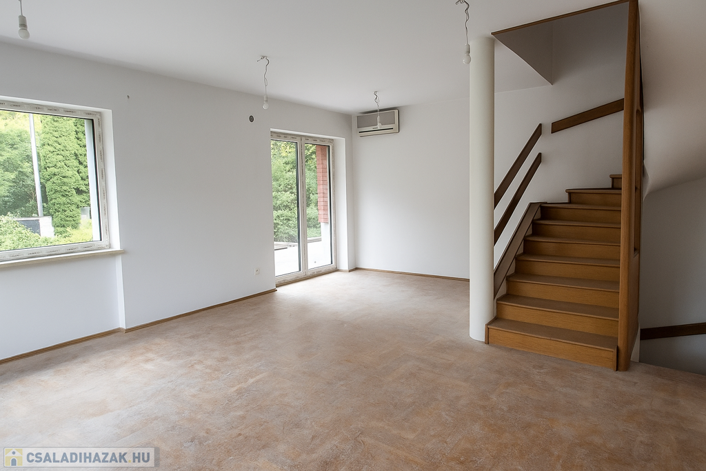 •Földszint: 35 nm nappali + 18 nm terasz, 17 nm konyha + étkező kertkapcsolattal, WC, kamra