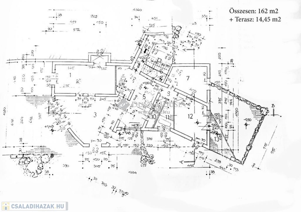 Az ingatlan 1998-ben épült 38 cm-es porotherm téglából, külső szigeteléssel. Minden közművel rendelkezik, fűtése gázkazánokkal történik. A két lakáshoz külön villany- és gázmérőóra van. Alaprajzok mellékelve. A fűtés csőrendszere és a réz villanyvezetékek jó állapotúak.