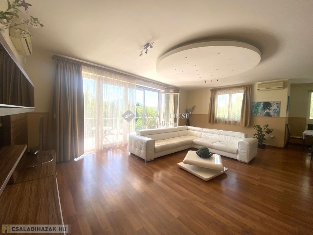 Remetekertváros csendes környezetben, 836,36 nm-es saroktelken telken eladó egy 3 szintes családi ház.
