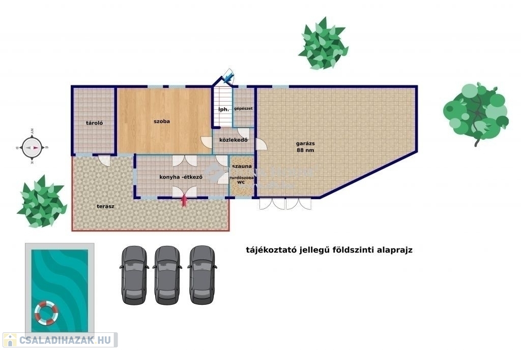 Ezen a szinten van a minimum 3 autónak elegendő garázs is.
