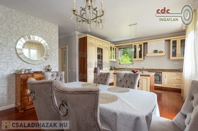 EXKLUZÍV OTTHON ELADÓ BUDALIGETEN! II. kerületben, Budaliget egyik legnívósabb részén, közel a francia iskolához kínáljuk megvételre ezt az 540 m2-es elken lévő, 270 m2-es, 3 szintes, 7 szobás családi házat. Az ingatlan csendes helyen, erdő közelében helyezkedik el gyönyörű panorámával a környező hegyekre. A házat tökéletes elrendezés és a hatalmas üvegfelületeknek köszönhetően természetes fényben úszó belső terek jellemzik. Az átépítés során magas minőségű, prémium anyagok kerültek felhasználásra. A földszint kertkapcsolatos amerikai konyhás nappalival, vendégszobával, mosdóval és gardróbbal rendelkezik. Az emeleten 3 tágas hálószoba, melyből az egyik fürdőszoba kapcsolatos, 2 fürdőszoba, 2 gardrób szoba és közlekedő került kialakításra. Az alsó szinten két szoba, fürdőszoba és konyha terasszal található. Ennek a szintnek külön bejárata is van, így tökéletes lehetőség vállalkozásra, vagy egy elszeparált külön bejáratú lakásnak is. A fűtést Vaillant kondenzációs gázkazán, kandalló és Daikin hűtő fűtő klíma biztosítja. Biztonsági bejárati ajtók, riasztórendszer, elektromos redőny szúnyoghálókkal kerültek beépítésre. Automata kapu, garázskapu, kényelmes garázs, fedett és nyitott kocsibeálló áll rendelkezésre. A ház kívülről hőszigetelt, a kert gondozott, automatikus öntözőrendszerrel ellátott. Ez a ház tökéletes választás azok számára, akik egy exkluzív, nyugodt környezetben szeretnének élni, miközben élvezhetik Budapest egyik legszebb kerületének előnyeit.