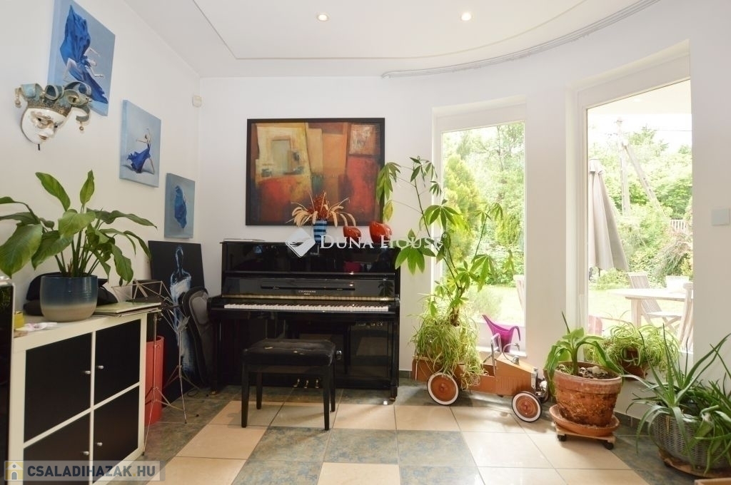 Eladó egy önálló családi ház Budaliget csendes, kertvárosi részén, a Francia iskola és további neves oktatási intézmények közelében. A napfényes otthon kiváló panorámát nyújt, mintegy 6 szoba, tágas nappali közvetlen kertkapcsolattal és terasszal, 3 fürdőszoba, valamint egy szauna szolgálja a lakók kényelmét. Az elegáns, egyedi kialakítású kert intim hangulatot áraszt, ahol egy kerti tó is helyet kapott. Mindemellett egy duplagarázs is a ház része.