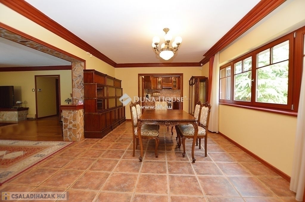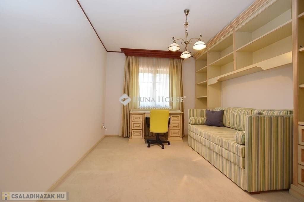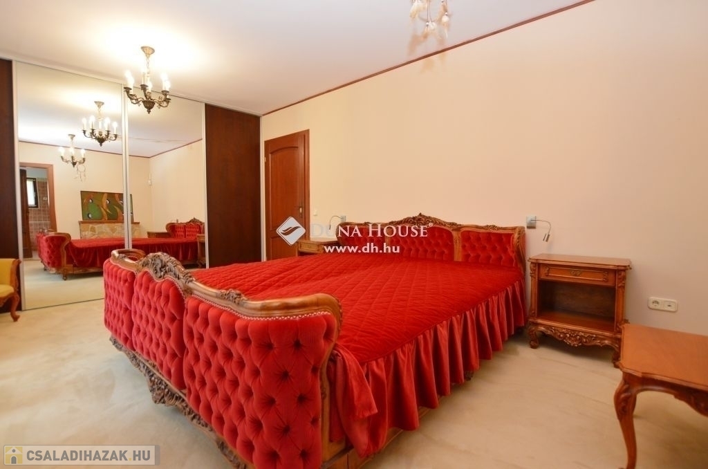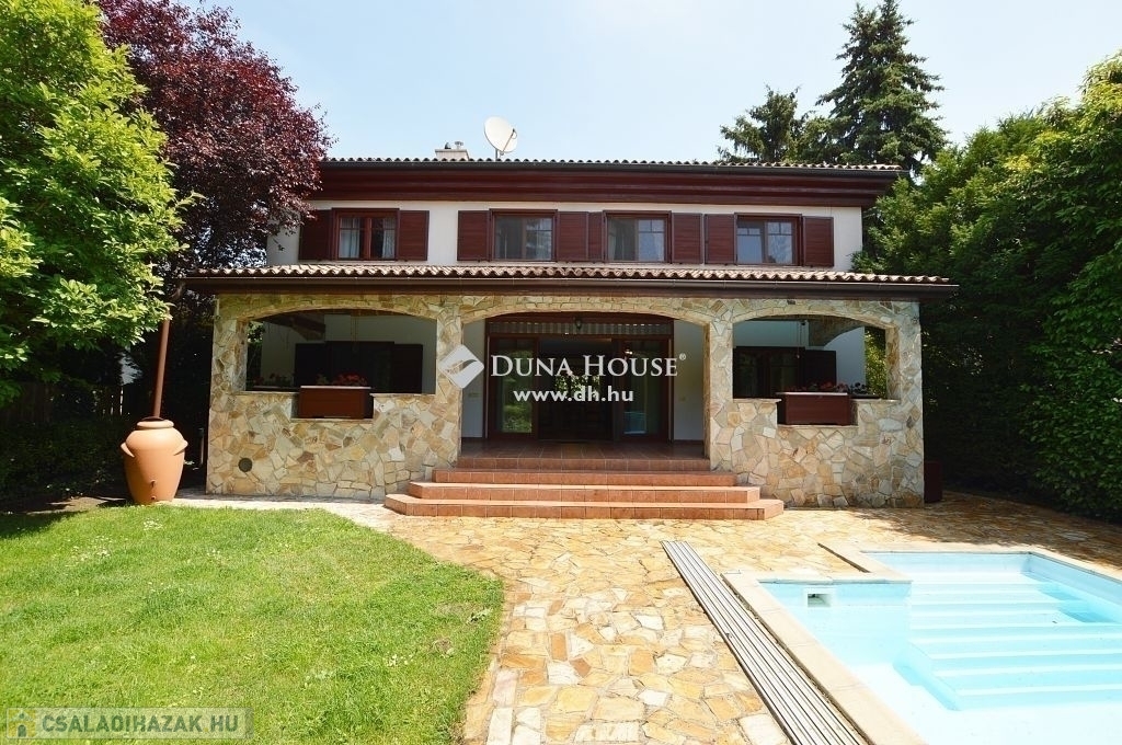 Budaligeten nappali + 5 szobás , mediterrán stílusú , medencés családi ház eladó .A ház nagyon szép állapotban van, minőség, örök elegancia jellemzi külső és belső megjelenésében is! A földszinti részen közvetlen kertkapcsolatos tágas, kandallós nappali került kialakításra, mellette a konyha, kamrával, háztartási helyiség-gardrob, fürdő. Az emeleti szinten a szülői hálóhoz közvetlenül kapcsolódik a tágas fürdőszoba, továbbá itt vannak a gyermekszobák, vendégszoba, dolgozó és külön fürdőszoba. Kedvező rezsi, harmonikus otthon!Riasztóberendezések, kamerarendszer is kiépítésre került. Fűtési renszere távvezérlési lehetőséggel ellátott. A garázs mellett 2 autó beállására is van lehetőség, továbbá a ház előtt is kiépített parkoló fogadja a látogatókat.Az ingatlan kertjének elrendezését úgy alakították ki, , hogy az akár a nappali kényelmét nyújtsa az egész család számára,de mindezt a szabadban – megőrizve a szabadtér által kínált páratlan lehetőségeket. Fedett, fűtött kerti medence, grillező pavilon használata kikapcsolódást nyújt a család, baráti társaságok... részére. Elhelyezkedése kiváló, csendes madárcsicsergős környezetben van, mégis a tömegközlekedés néhány perces gyalogostávolságra található. Oktatási intézmények, nemzetközi iskolák / francia, amerikai / , bevásárlási lehetőségek a közelben.Ezt a házat látni kell, ebbe minden kedves látogató csak beleszeretni tud! Várom szíves hívásukat!