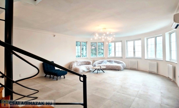 II/A kerületben, Remetevárosban eladó egy az 1990-es években épült, 320 m2-es, felújított családi ház, mely egy 1128 m2-es telken helyezkedik el. Az ingatlan nagy teraszos, panorámás, 5 szobás, 3 fürdőszobás, a garázs szinttel együtt 3 szintes. A fűtést gázcirkó készülék biztosítja, a ház hűtő-fűtő klímával felszerelt. Az ingatlan tehermentes.