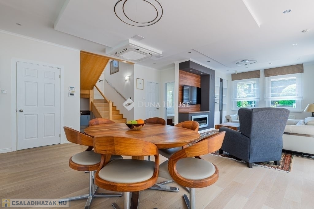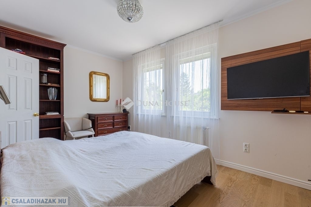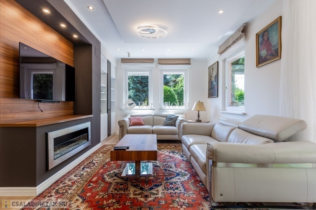 Kivételes lehetőség egy prémium kategóriás otthonra vágyóknak!Eladó ízlésesen felújított, 3 szintes ikerház medencével és hatalmas terasszal!Ez a 241 m²-es, háromszintes ikerház ideális választás akár két generáció együttélésére is tágas terei, külön beosztható szintjei és gondosan megtervezett belső elrendezése révén.Főbb jellemzők:Nappali + 6 hálószoba - 3 fürdőszoba rengeteg tér családnak, munkának vagy vendégeknek3 szint jól elkülöníthető életterek, ideális nagycsaládosoknak vagy két generációnakHatalmas terasz tökéletes helyszín reggeli kávézáshoz vagy esti grillezésekhez barátokkalGyönyörű, parkosított kert zöld oázis a város szélénSaját medence a nyári hónapok kihagyhatatlan kényelmeJakuzzi és szauna otthoni wellness minden napÍzlésesen felújított, minőségi anyagokkal azonnal költözhető állapot Kiváló elhelyezkedés tömegközlekedés pár lépésre, iskolák , óvodák a közelben, mégis nyugodt, kertvárosi környezet.Ez az ingatlan ideális választás azoknak, akik kompromisszumok nélküli, magas színvonalú otthonra vágynak legyen szó akár családi fészekről, akár hosszú távú befektetésről. Ne maradjon le róla! Tekintse meg személyesen, és győződjön meg a kivételes hangulatról és a praktikus elrendezésről!Várom hívását!