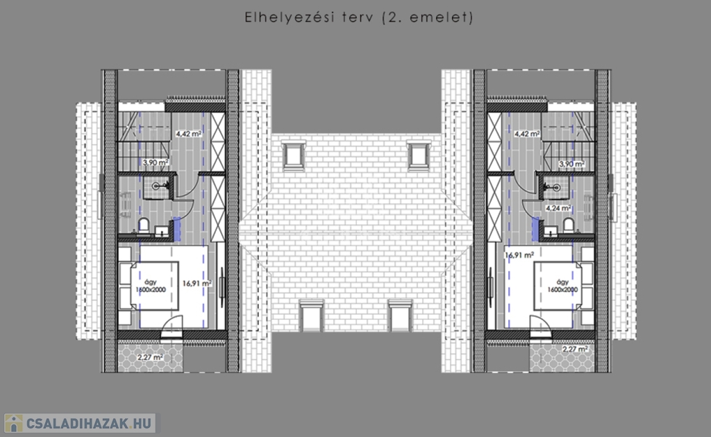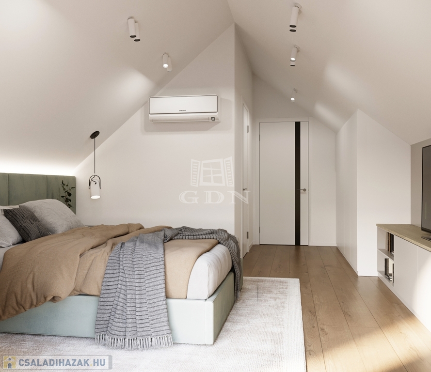 A tulajdonos ajándékba adja továbbá a tetőtéri szülői háló teljes bútorzatát, melyet a belsőépítészeti tervek alapján méretre gyártanak le.