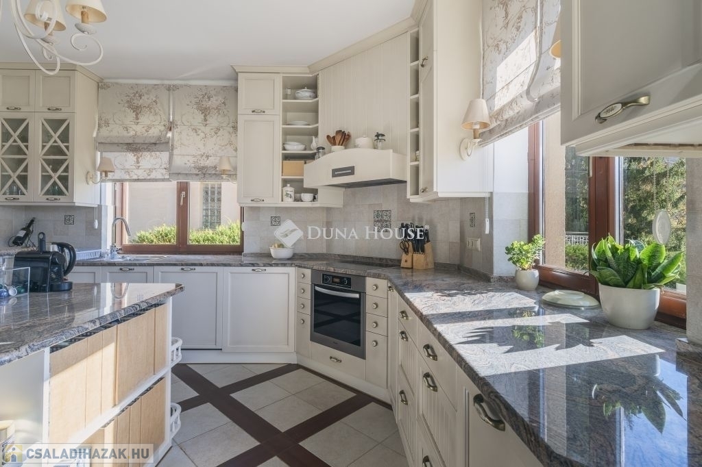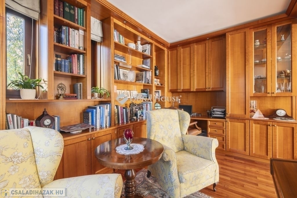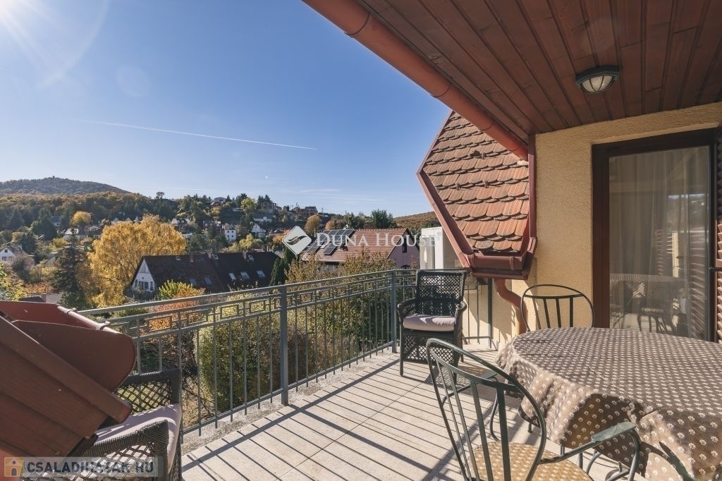 Remetekertvárosban, a Hidegkúti út felé eső részén, csodálatos 180 fokos örökpanorámával a Hárs-hegy kör két kilátójára 3 szintes, 2001-ben épült családi ház, 0,5K övezetben, természetvédelmi terület közelében eladó!A ház 991 m2-es, déli irányba lankás, kissé lejtős építési telekre épült, beton sávalapra, a főfalak 30-as Porotherm blokktégla-fallal, monolit vasbeton tetőszerkezettel. A teljes dokumentáció, műszaki leírás rendelkezésre áll, a Tulajdonosok saját részre építtették, amely 2001-ben kapott használatbavételi engedélyt. A ház modernizálása azóta 2 ütemben is megvalósult, a teljes konyha, a gépek cseréjével a belső terek, ajtók, magas minőségű faborítására került sor, kifinomult enteriőrökkel, cottage stílusjegyeket képviselve. Jellemző rá a sok fa használata, a kárpitozott bútorok, szép textilek, függönyök mind a közösségi terekben, mind a lakó-szobákban.A korábbi esztétikai felújítás mellett, 2023-ban a teljes fűtés rendszer átalakítására került sor, ST SOLAR 16 db napelem, Longi 410W modullal, amelyre a beszereléstől számított 15 év gyártói termék garanciá-val ellátott. (További részletek a személyes megtekintés alkalmával.)A családi ház átgondolt tervezés eredményeként az alsó szinten található 2 állásos gépkocsi tárolóval, jacuzzi, szauna, kondi- és hobby szoba, bortároló, kamra, tároló, mosó- és szárító helyiség, további tárolóval. Kertkapcsolatos ez a szint, így a privát napozó teraszra léphetünk ki innen.A földszinten az előszobából, külön is nyílik minden helyiség, a bal és a jobb oldali helyiségek és a külső formák tükörképei egymásnak. A ház központi részén a családi ebédlő, amelyből egyik irányba a konyha-kamra, a másik oldalon a családi nappali és TV szoba, amelyet hangulatos kandalló választ el egymástól. Mindhárom térből kiléphetünk a napos és panorámás teraszra, ahonnan csodálhatjuk az elénk táruló természetvédelmi területet, a kilátókat és akár a naplementét. Ezen a szinten található még egy dolgozó/vendégszoba és ehhez közvetlenül kapcsolódóan egy fürdőszoba W.C.-vel.A felső szinten, a földszinti kialakításhoz hasonlóan a központi térben egy közösségi tér, zeneszoba, tőle balra a gyerekszoba és jobbra a szülői hálószoba. Mindhárom szobából kijárat a kb. 12 nm-es DNY-i tájolású, 180 fokos panorámával rendelkező erkélyre. A szülői hálóhoz kapcsolódik egy gardróbszoba és egy kádas fürdőszoba. A szinten található még egy további vendégszoba, saját tusolós fürdőszoba W.C.-vel.A kert egyik szegletében található nagy létszámú társaság befogadására is alkalmas, gyönyörűen kialakított, természetes anyagokból épült szaletli, fa bútorzattal, sütővel. Mellette egy kisebb, szintén faborítású tároló, a további kerti eszközök igényes tárolására.A hangulatos és egyedi családi otthon jelen állapotában és formájában is kiválóan alkalmas a beköltözésre, azonban egyedi igények kialakítása esetén még további, szintenkénti alakítások is megoldhatóak, a telek beépíthetősége 15%.Kérdéseivel, megtekintési szándékával szíveskedjék hívni a fenti telefonszámot, amelyen időpontot tudunk egyeztetni és megtekinthető ez az egyedi hangulatú millö, amely a valóságban még inkább átadja a hangulatát.