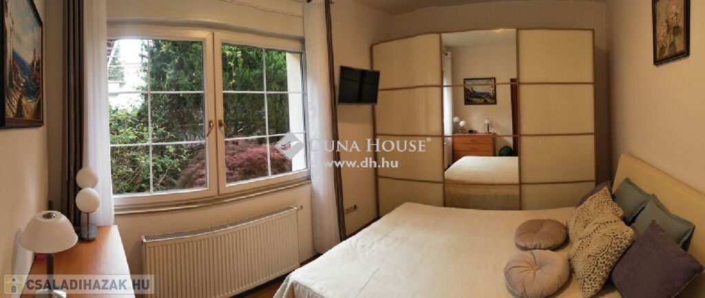 Eladó 2009-ben épült családi ház, gyönyörű panorámával, közel a Francia iskolához! A ház 908 m2-es telken helyezkedik el, jó elosztású, 2 nappali és 5 hálószoba található benne, valamint több tároló, mosókonyha, gardrób, a hálószobák külön nyílnak, így a nyugodt elvonulási is megoldott.Az egyik nappaliban külön konyha is kialakítható, ha több generáció szeretne együtt élni.Tágas amerikai konyhás nappalija rendkívül világos, 3 fürdőszobája egyikében szauna került elhelyezésre.A fűtést modern gázkazán és padlófűtés is biztosítja! A rezsi kedvező!A terek jól kihasználtak, a ház kényelmes nagyobb család számára is, családi rendezvények helyszíne lehet a 28m2-es terasz! Innen jutunk le a gondozott kertbe, mely zegzugos és egy halastó is található benne. A panoráma egyszerűen gyönyörű!A híres Náncsi néni vendéglő és számos nemzetközi iskola a közelben található, autóval 5 percre van a Francia Nemzetközi Iskolától, 8 percre az Amerikai Nemzetközi Iskolától, az Amerikai Egyházi Iskolától és a Spanyol Nemzetközi Iskolától.Néhány perc alatt a Hűvösvölgyi végállomáshoz juthatunk.A ház közelében sok bevásárló szupermarket található, TESCO, LIDL, SPAR, nagyon kényelmes a vásárlás.