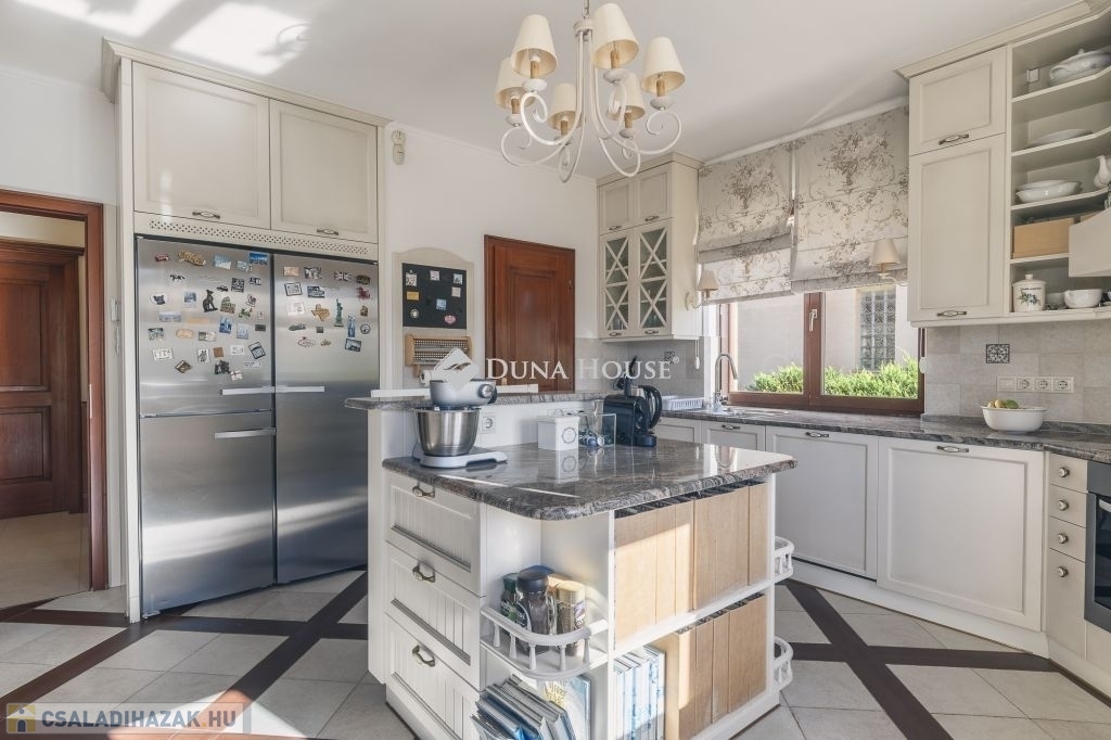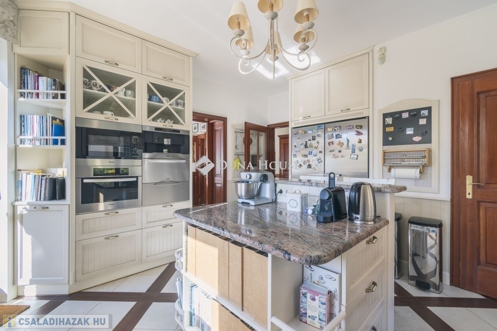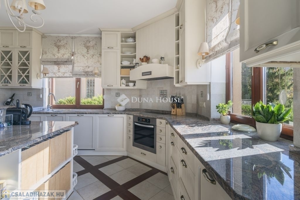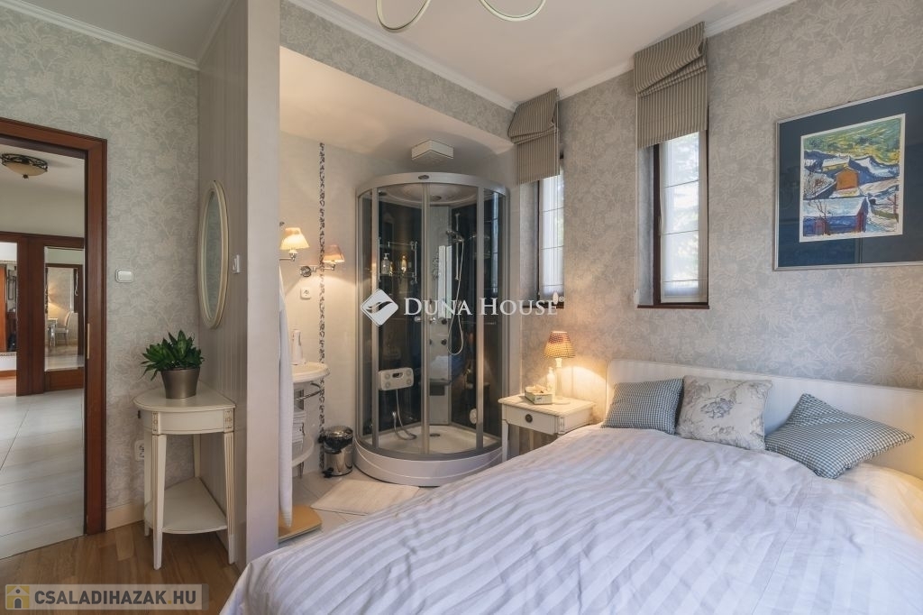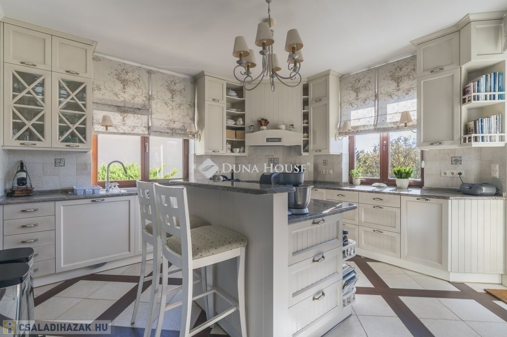 A ház 991 m2-es, déli irányba lankás, kissé lejtő építési telekre épült, beton sávalapra, a főfalak 30-as Porotherm blokktégla-fallal, monolit vasbeton tetőszerkezettel. A teljes dokumentáció, műszaki leírás rendelkezésre áll, a Tulajdonosok saját részre építtették, amely 2001-ben kapott használatbavételi engedélyt. A ház modernizálása azóta 2 ütemben is megvalósult, a teljes konyha, a gépek cseréjével a belső terek, ajtók, magas minőségű faborítására került sor, kifinomult enteriőrökkel, cottage stílusjegyeket képviselve. Jellemző rá a sok fa használata, a kárpitozott bútorok, szép textilek, függönyök mind a közösségi terekben, mind a lakó-szobákban.