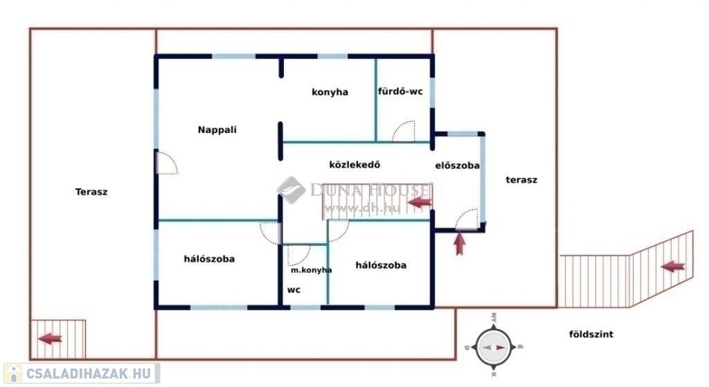 A 116 m2-es földszinten előszoba, 2 fürdő-wc, 2 hálószoba és a hatalmas nappali-konyha terasz kapcsolattal található. A nappalival kapcsolatos terasz közel 50 m2-es.