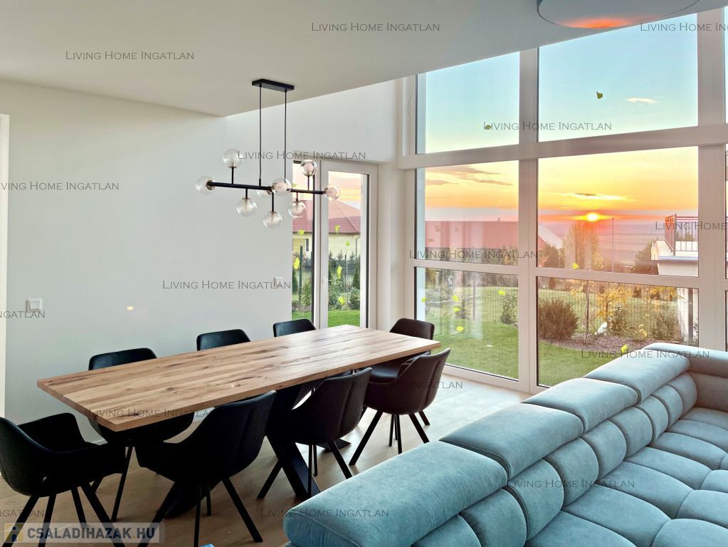 A deli tájolású nappali és a nagyméretű üvegfelületek páratlan fényviszonyokat és örökpanorámát biztosítanak, amely a nap minden szakában különleges atmoszférát teremt.