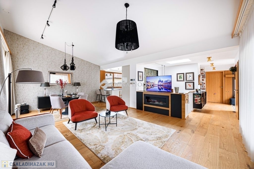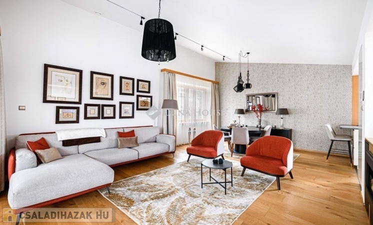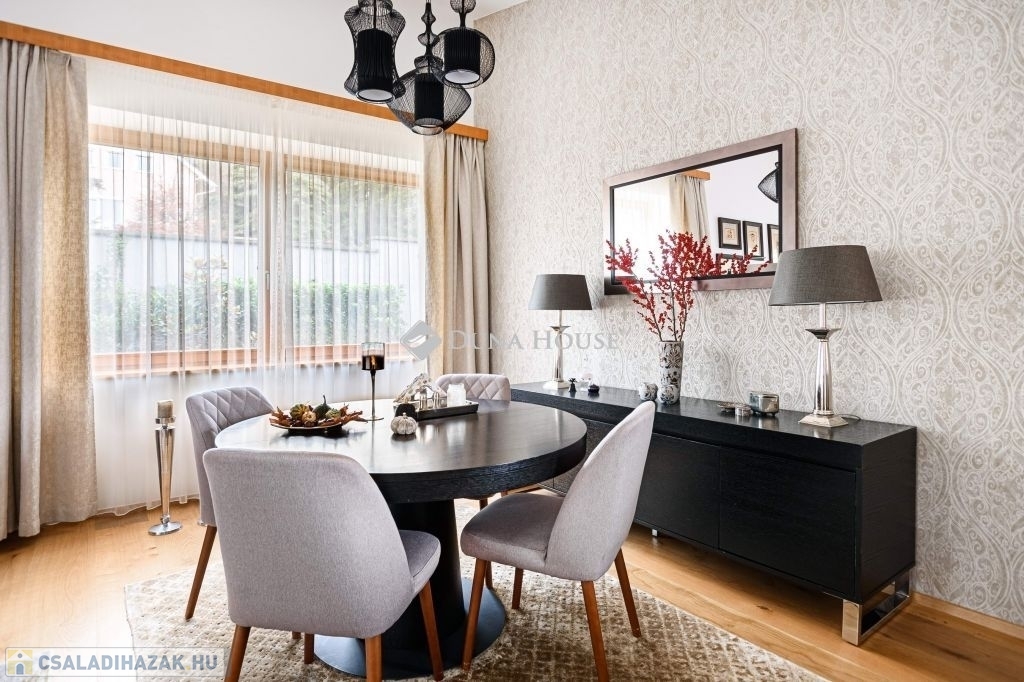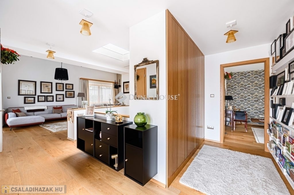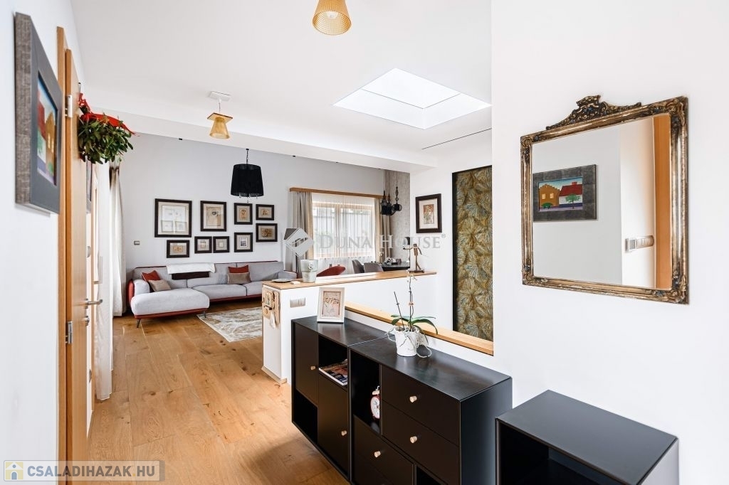 Eladásra kínálunk egy különleges karakterű, belső kétszintes családi házat, amely a kortárs luxus, az időtálló építészeti minőség és a magas szintű műszaki megoldások tökéletes egyensúlyát képviseli.