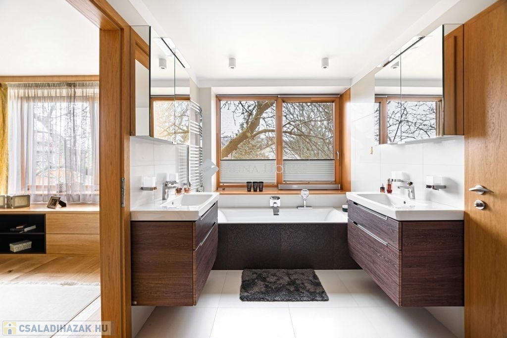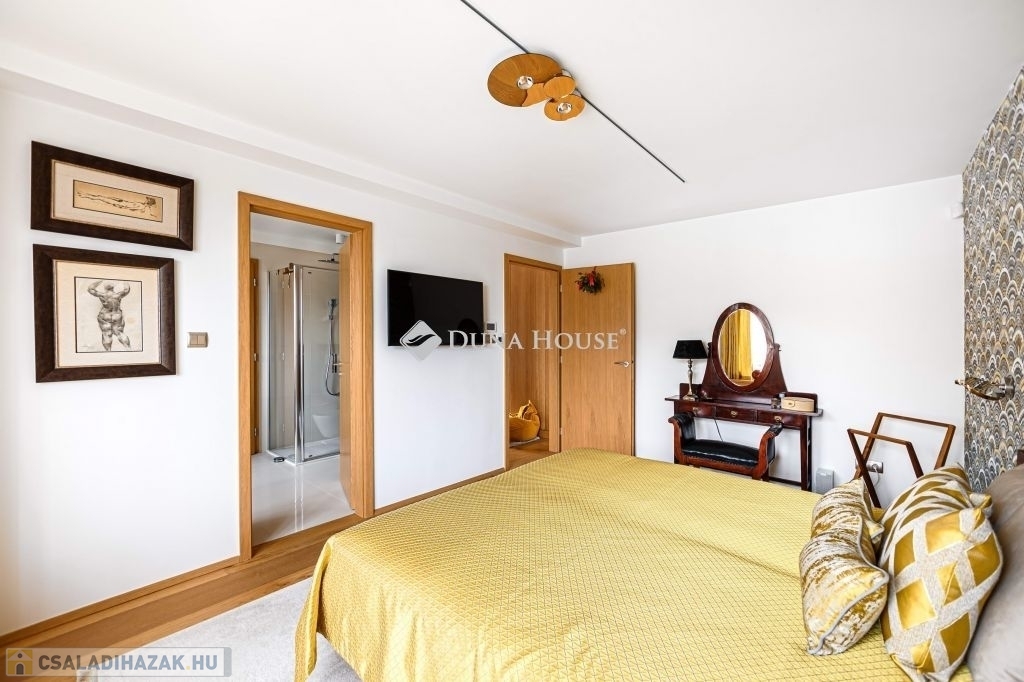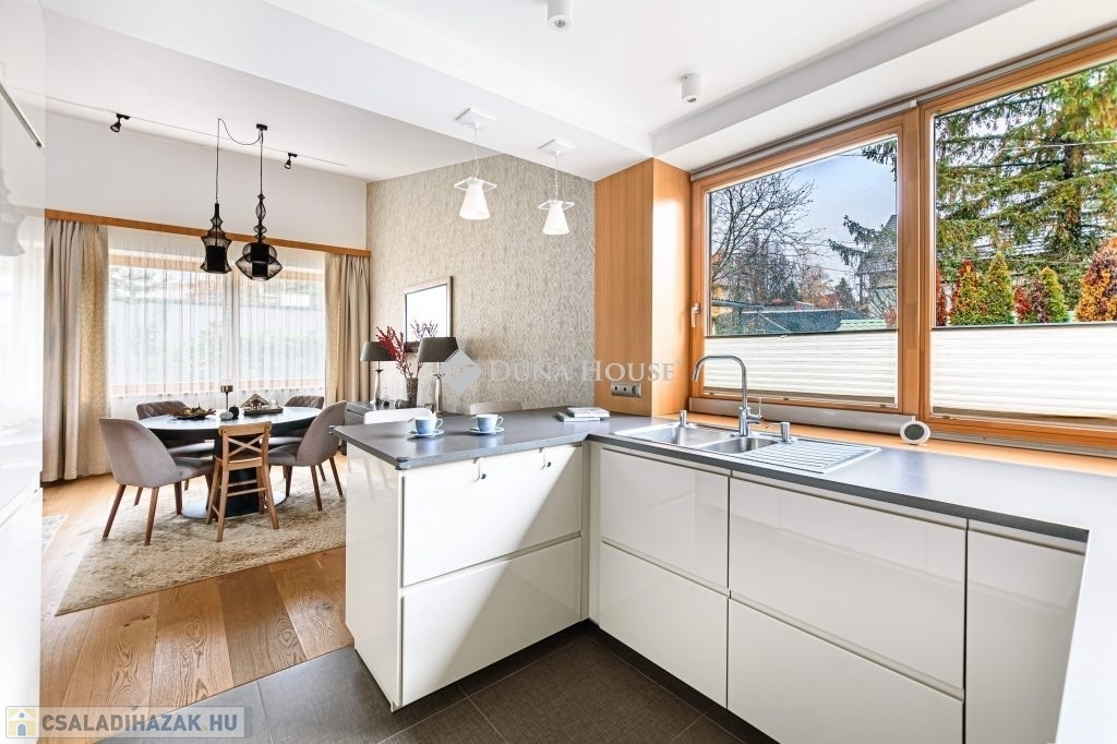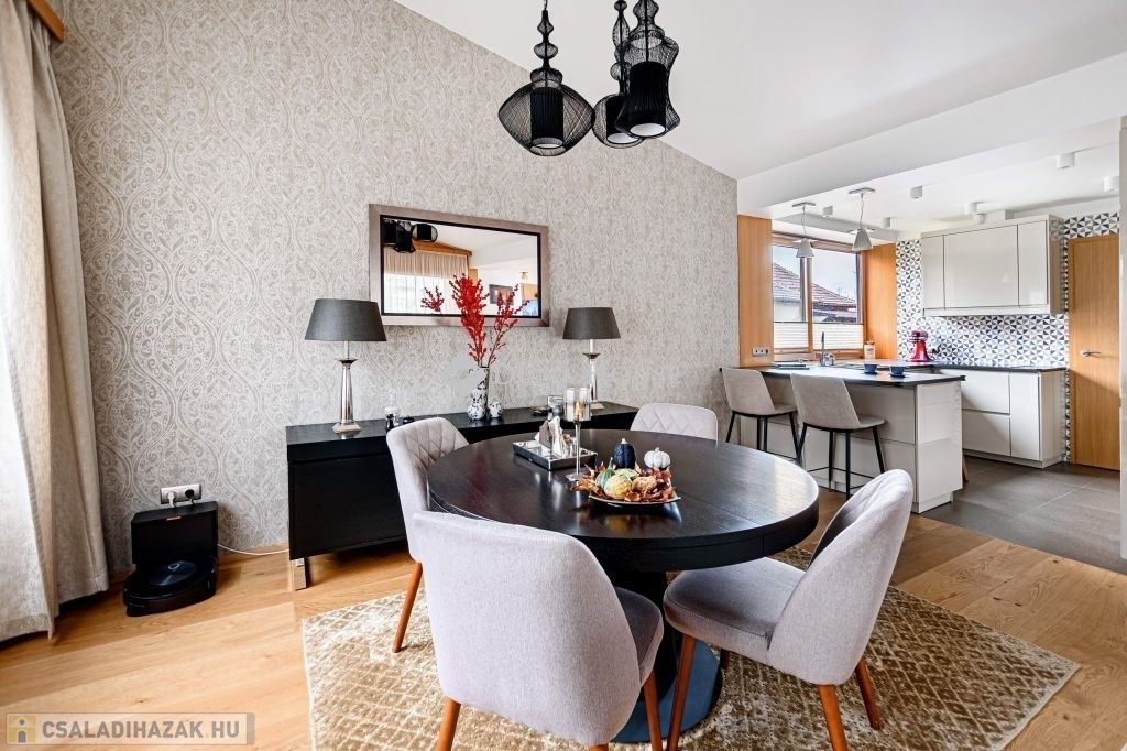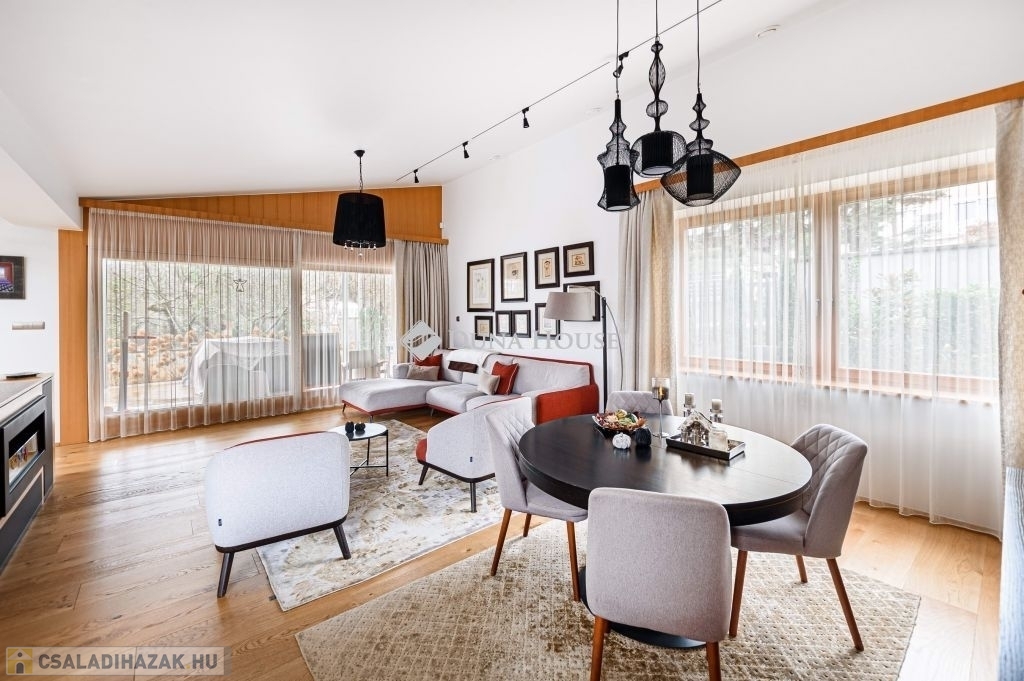 Eladásra kínálunk egy különleges karakterű, belső kétszintes családi házat, amely a kortárs luxus, az időtálló építészeti minőség és a magas szintű műszaki megoldások tökéletes egyensúlyát képviseli.