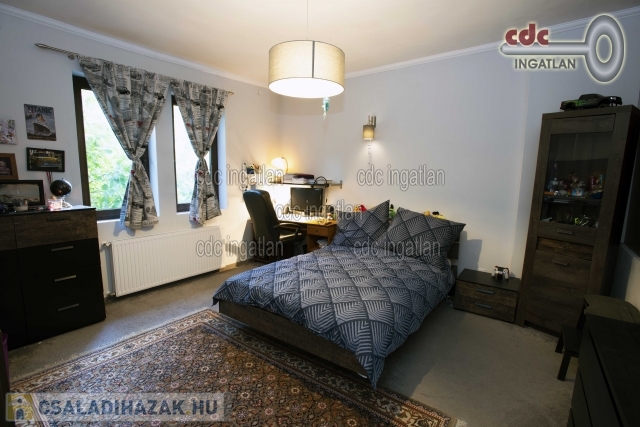 A 2/A kerületben, a Hidegkúti útról nyíló egyik csendes mellékutcában egy 2018-ban mindenre kiterjedő felújításon átesett, 370 m2-es, 3 szintes, roppant igényesen, mediterrán stílusban kialakított családi házat kínálok megvételre 835 m2-es saroktelken. 130 m2-es nappali fatüzelésű kandallóval + 8 szoba, 12 és 40 m2-es teraszok, korszerű fűtésrendszer és tucatnyi remek megoldás jellemzi az ingatlant. A prémium beépített anyagokon, minőségi felújításon túl megemlítendő hogy a környező házakkal ellentétben itt plusz egy szint lett engedélyezve, tehát magasabbról gyönyörködhetünk a panorámában. Az előkertben található a fedett beálló 3 gépkocsinak és a garázs egy beállási lehetőséggel. A fedett beállók viszonylag könnyedén zárt garázzsá alakíthatóak, ennek a kivitelezését - igény szerint - a tulajdonos vállalja. További információkért, fotókért, videóért, részletes leírásért, esetleges megtekintésért ne habozzon felvenni velem a kapcsolatot.