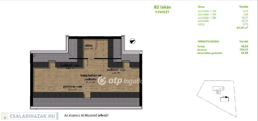 A megvételre kínált ingatlan szinte önálló CSALÁDI HÁZKÉNT került kialakításra. Ugyan az első emelettől indul az ingatlan alsó része, de kétszintes kialakításának + a padlásnak köszönhetően, továbbá, hogy csak egy alsó, szeparált szomszédja van így az önálló családi ház érzést nyújtja. 210 nm-es lakóterületen összesen 5 szobát alakítottak ki, a kedvező térszerkezetnek köszönhetően mindegyik külön nyílik és jól elválasztott egymástól. A tervezők arra is figyeltek, hogy két master bedroom (privát gardróbbal és fürdővel) is kialakításra került, egy a földszinten, egy pedig az emeleten. A padlástér további 63,5 nm, melynek hasznosítása az új tulajdonos fantáziájára van bízva. A nappali és az alsó szinten lévő háló közvetlen, összesen 40 nm-es terasz és 384 nm-es privát kert kapcsolattal rendelkezik. Elosztását tekintve nappali + 4 hálószobával rendelkezik, jól elkülönülten, hogy a család minden tagjának meglegyen az intim szférája. Két fürdőszoba került kialakításra, így dupla komfortosnak tekinthetjük, a privát kertkapcsolat a teraszról érhető el. Hatalmas és egyben jól tájolt nyílászáróinak köszönhetően a nap minden szakaszában világos, tájolása Dél-nyugati.