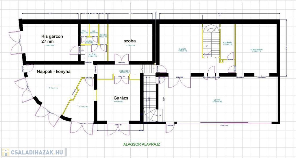 A 3 szintes házban az alsó szinten van garázs, a kiszolgáló helyiségek és egy szoba
