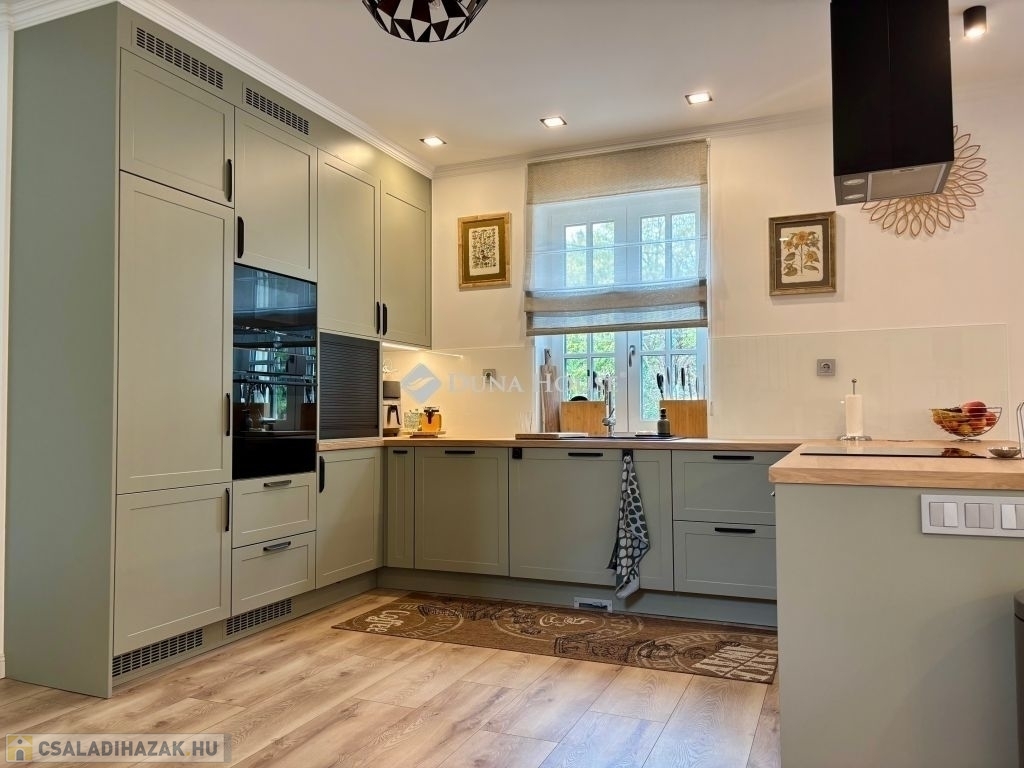 Eladó egy frissen elkészült luxusvilla Budapest II. kerületének Széphalom városrészében. Ritka és különleges, amerikai stílusú építészeti gyöngyszem egy csendes és zöldövezeti utcában. A ház nettó alapterülete 205 nm amihez tartozik egy 50nm-es terasz és minden szobához 4-6 nm erkély. Az ingatlan két lakószintes, a telek 800 m²-es parkosított kertet kínál. A földszinten egy elegáns előtér fogad, ebből belépve található egy tágas, amerikai stílusú konyha, étkező és nappali egy légtérben, amely a családi élet központja.Ezen a szinten került kialakításra egy vendégszoba saját fürdőszobával és WC-vel, valamint egy tároló, egy kamra és a gépészeti helyiség. Egy impozáns lépcsőn felérve az emeleten három erkélyes hálószoba található, mindegyikhez saját fürdőszoba és WC tartozik, két hálószobához pedig külön gardróbszoba is kapcsolódik. Ezek mellett egy mosókonyha/háztartási helyiség és egy közlekedő is helyet kapott itt. Az ingatlan különlegességét tovább fokozzák az extra felszereltségek, mint például riasztó, központi porszívó, IP kamerarendszer, robot fűnyíró, Daikin hőszivattyú (H-tarifa), távvezérelhető padló és mennyezet fűtés/ - és hűtés, ami helyiségenként szabályozható, valamint vízlágyító. A csodálatos kertről sem feledkezhetünk meg, amely gondosan parkosított és öntözőrendszerrel van ellátva. A kertben található egy fedett gépkocsibeálló 2 autó részére, elektromos kapuval és autótöltő lehetőséggel, illetve egy kültéri műhely/motortároló továbbá egy tágas DNY-i terasz, ami ideális a pihenésre és vendégfogadásra. Ez a ház tökéletes választás azon családok számára, akik az exkluzívitásra és nyugalomra vágynak Budapest egyik legelőkelőbb kerületében, mindezt elegáns környezetben, magas minőségben kivitelezett otthonban szeretnék megtenni.Az ingatlan Széphalom könnyen megközelíthető és nyugodt környezete mellett kiváló infrastruktúrával rendelkezik. A közelben találhatóak neves oktatási intézmények, nemzetközi iskolák, bevásárlóközpont, éttermek, uszoda és sportközpont és nem utolsó sorban a környék tömegközlekedése is megoldott. Ha egy olyan otthont keres, ahová csak a bőröndjét kell hoznia, itt erre is lehetőség van: az ingatlan akár teljes bútorzata is az Öné lehet. Ha felkeltette érdeklődését, keressen bizalommal!