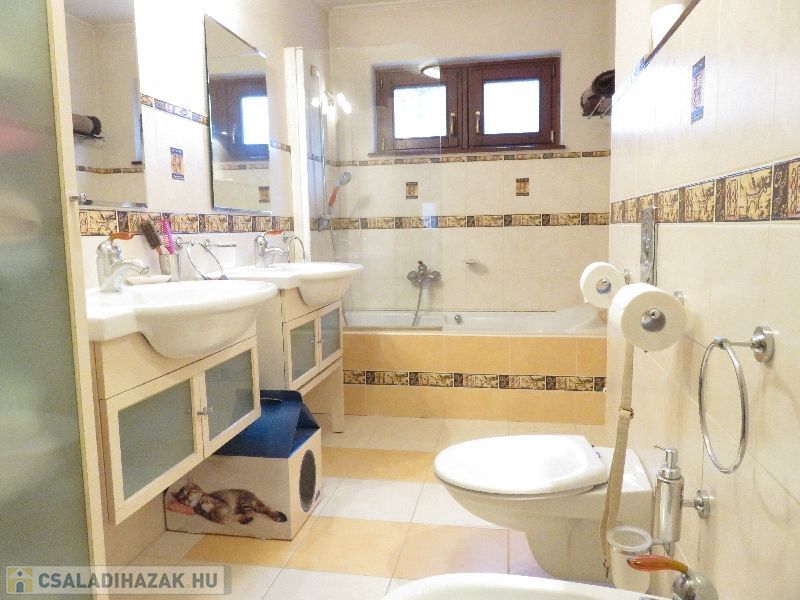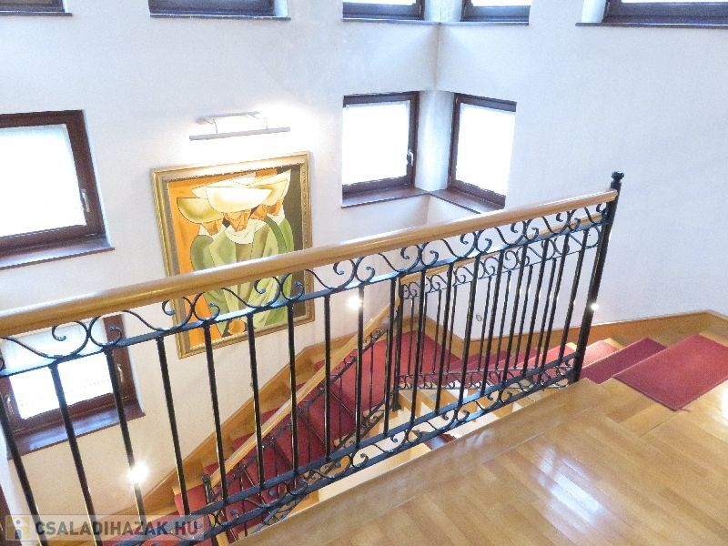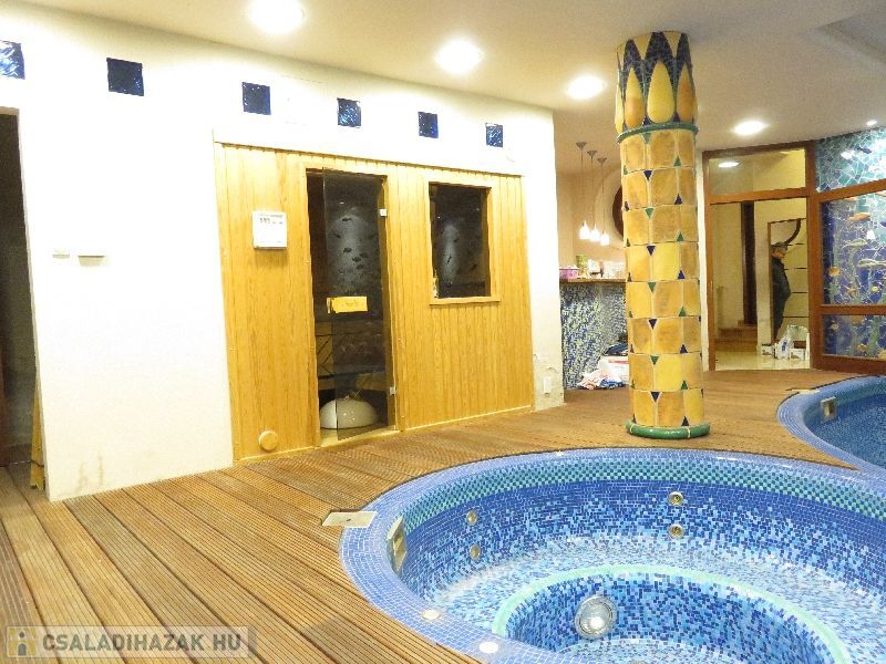* Félszuterén: duplagarázs, wellness (medence, jacuzzi, szauna, zuhanyzó), tornaterem, mosdó, mosókonyha, kazánház