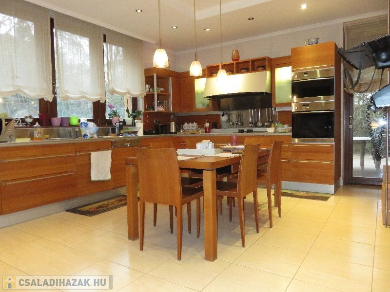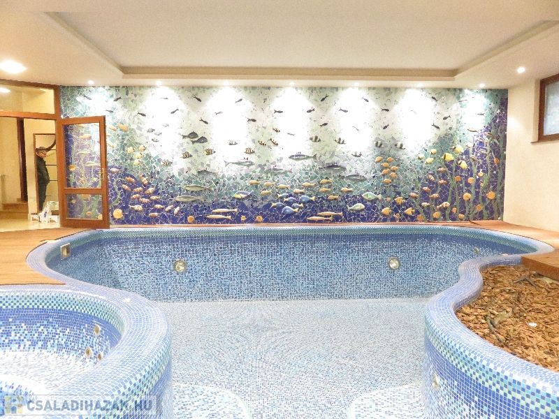 II/A Máriaremete csendes utcájában 2001-ben a legkorszerűbb anyagokból épült 600 m2 + 100 m2 teraszos, 2 nappali + 6 szobás, kubai stílusban berendezett, klimatizált, felújítandó családi ház duplagarázzsal, egyedi úszómedencével, jacuzzival, szaunával, 2 légkamrás fa nyílászárókkal, trópusi fa burkolatokkal eladó.