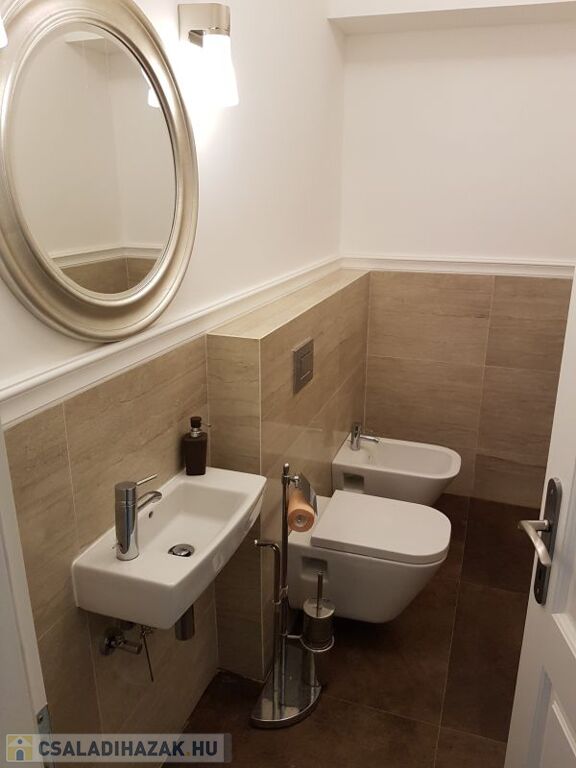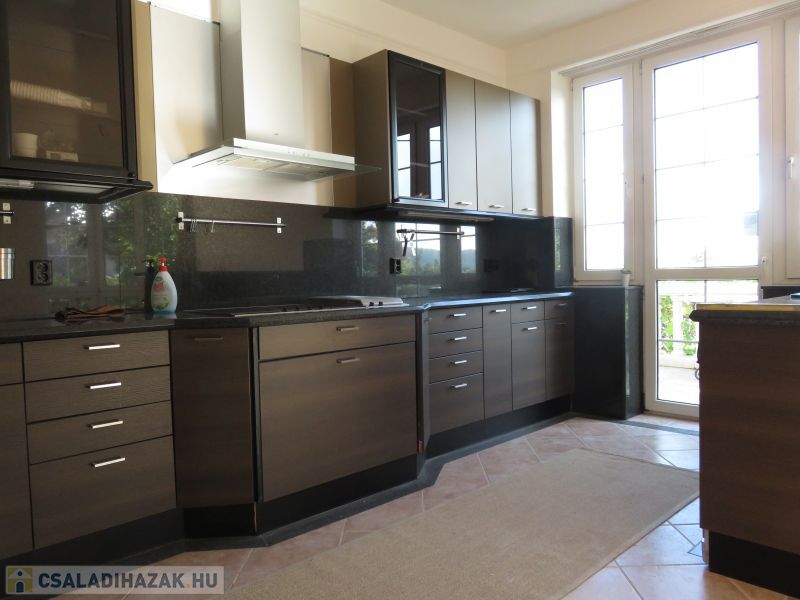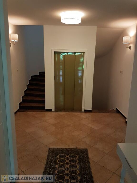 A belső ajtók műbútor minőségű cseresznye furnéros kivitelűek, a lépcsőház tiszta gránit, az elegáns fürdőszobák Villeroy & Boch szaniterekkel készültek. Vendégeknek a pince szinten lévő kiszellőztethető személyzeti konyhában lehet főzni, és nem lesz ételszag a lakásban. A nappaliban és az emeleti hálókban légkondi működik. Az ikerház mindkét felében saját külön hidraulikus működtetésű zajtalan lift működik a pincétől a tetőtérig.