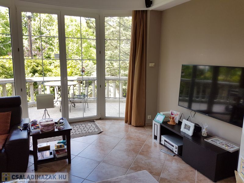 Rózsadomb-Guggerhegyen luxus szinten kivitelezett ikerházfél dupla garázzsal, hatalmas nappalival, 3 lakosztállyal, 1500m2-es teljesen intim ápolt örökzöld kertben eladó.