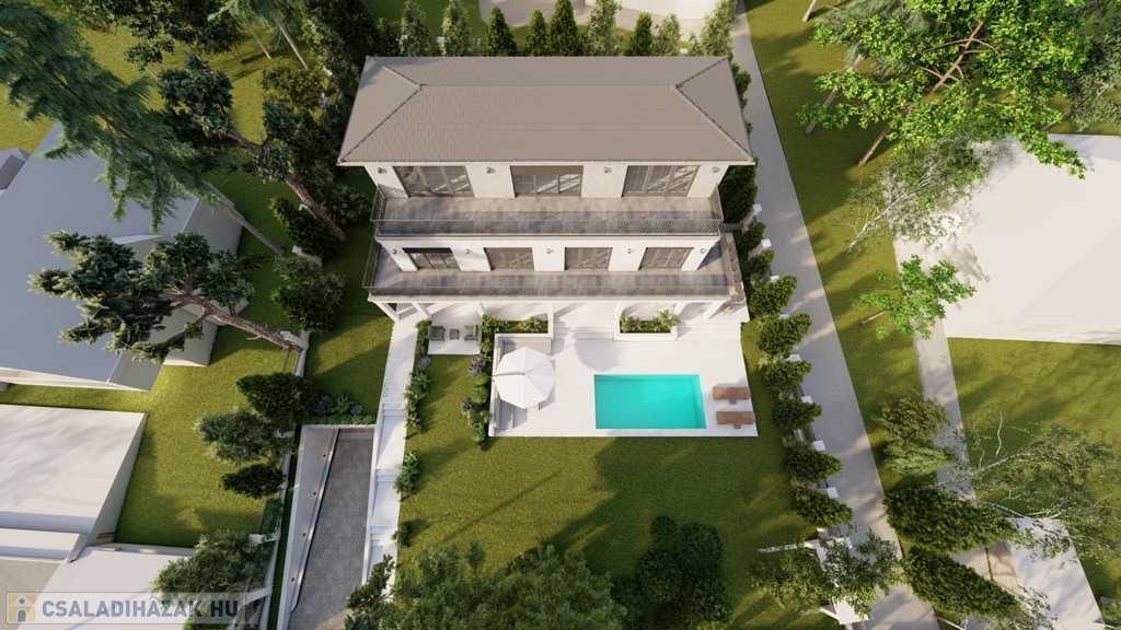 A telekre egy 3 lakószint + mélygarázs szint kialakítású családi villa került megtervezésre, összesen 472 nm nettó összalapterülettel, plusz 200 nm terasz területtel (érvényes építési engedély alapján), amelynek kivitelezési munkálatai elkezdődtek.