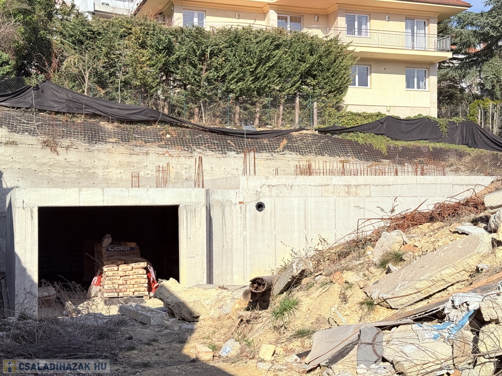 II. Törökvész középső részén, elegáns lakókörnyezetben, gyönyörű kilátással rendelkező, DÉLI tájolású, 900 nm–es, összközműves építési telekre tervezett családi villa megkezdett építkezése, elkészült garázs szinttel eladó!