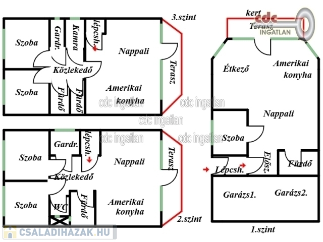 PÁLVÖLGYBEN, VÁROSI PANORÁMÁS, LUXUS CSALÁDI HÁZ ELADÓ, KÜLSŐ MEDENCÉVEL! II. kerületben, a Gugger-hegy alján kínálom megvételre ezt az 520 m2-es telken lévő, 300 m2-es, 3 szintes, 3 lakásos, 2 garázsos, 3 felszíni beállóval , kültéri medencével rendelkező, cirkófűtéses, klimatizált, napfényes, csendes, 2000-ben felújított, kitűnő állapotú, 3 lakásos társasházat. Az ingatlan 1989-ben épült, 3 szintes, szintenként egy lakás található. A földszinti terasz- és kertkapcsolatos, 74 m2-es, amerikai konyhás nappali + 1 szoba + fürdőszoba elosztású. A 2. szinten egy 85 m2-es, amerikai konyhás nappali + 2 szoba, gardróbszoba, 2 fürdőszoba és egy nagy terasz található. A 3. szinten 95 m2-es, amerikai konyhás nappali, 2 szoba, gardróbszoba, 2 fürdőszoba, nagy terasz került kialakításra. Minden lakás külön helyrajzi számon van, külön mérőórákkal felszerelt. A két teremgarázs is külön helyrajzi számon van. A kert varázslatosan gyönyörű, parkosított, füvesített, a medence, kiépített grillező és a virágzó növények színkavalkádja teszi még csodálatosabbá az ott élők életét. Szuper befektetés! Az ingatlanok hosszútávra ki vannak adva és a bérlők szívesen maradnának, de igény esetén a kiköltözés is megoldható. Nagy családoknak vagy több generáció együtt élésére is tökéletes választás. Értékálló befektetés! Ez az ingatlan azonnal pénzt hoz! Ezen a helyen presztizs értékű élni. A 2 db teremgarázs-hely, a 3 db felszíni beálló és a gépesített konyhabútorok és a fürdőszobai szekrények az ár részét képezik. Az ingatlan per- és tehermentes! Irányár: 690.000.000 Ft.