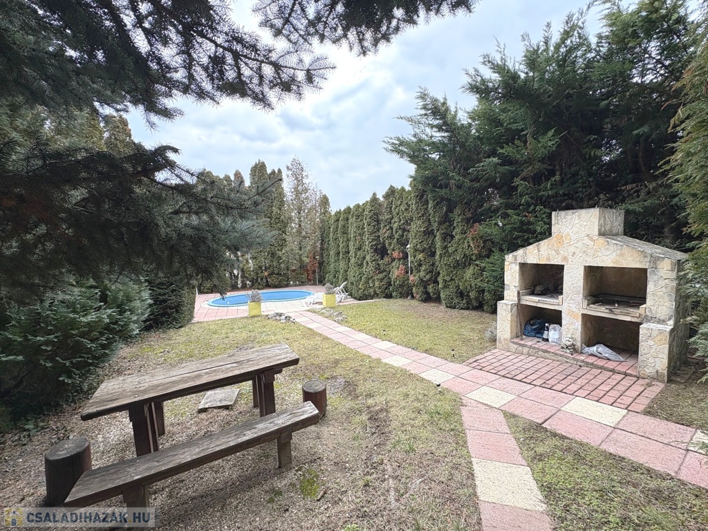 Az intim elhelyezkedésű, kellemes kertben medence, napozó, grillező szolgálja a lakók kényelmét.