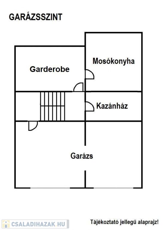 * Garázsszint 90 m2: duplagarázs (50 m2), gardrobe (13 m2), mosókonyha (~16 m2), kazánház (~5 m2)