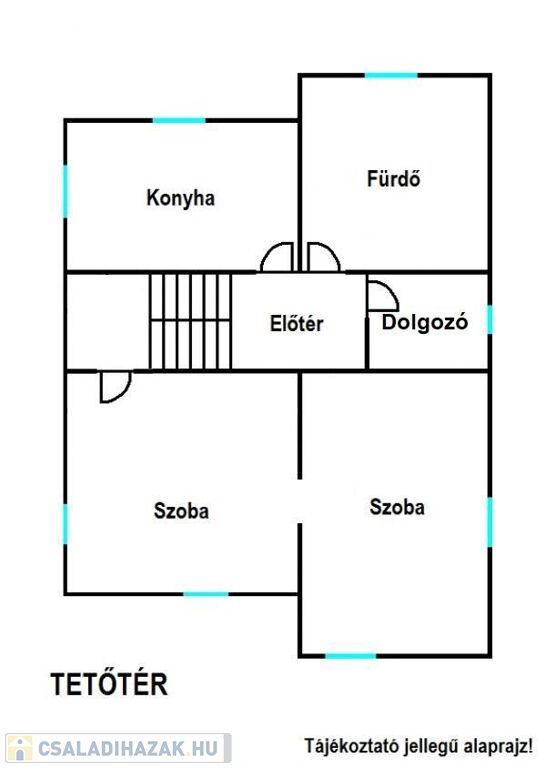 * Tetőtér 80 m2: 2 szoba (24, 25 m2), konyha (14 m2), fürdő (13 m2), fürdő (dolgozó m2), WC (1,5 m2), közlekedő, lépcsőház
