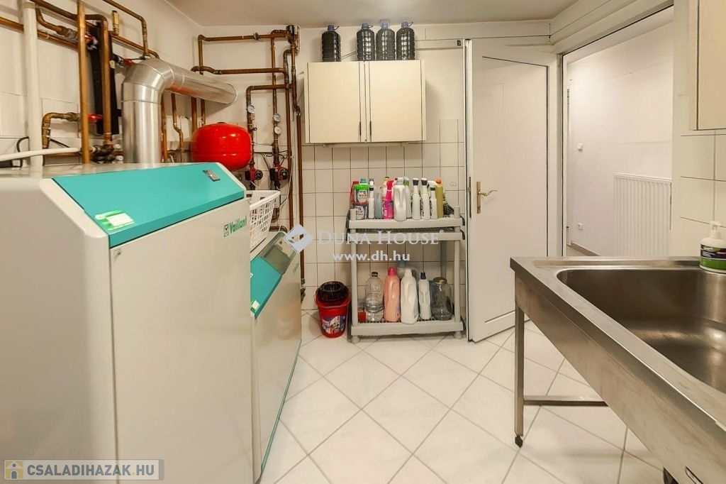 Az alagsorban található a kazán, s a melegvíz solar rendszer, a klubhelyiség, a szerszámos tároló közel 20 négyzetméteren, a borospince, s a 40 négyzetméteres tároló is.