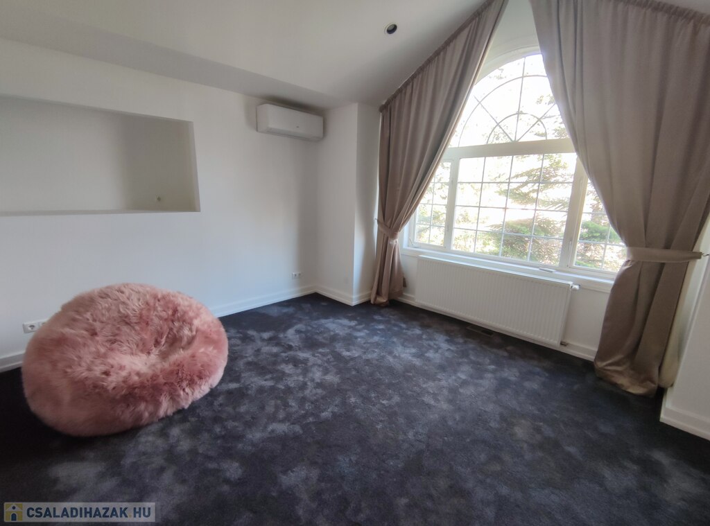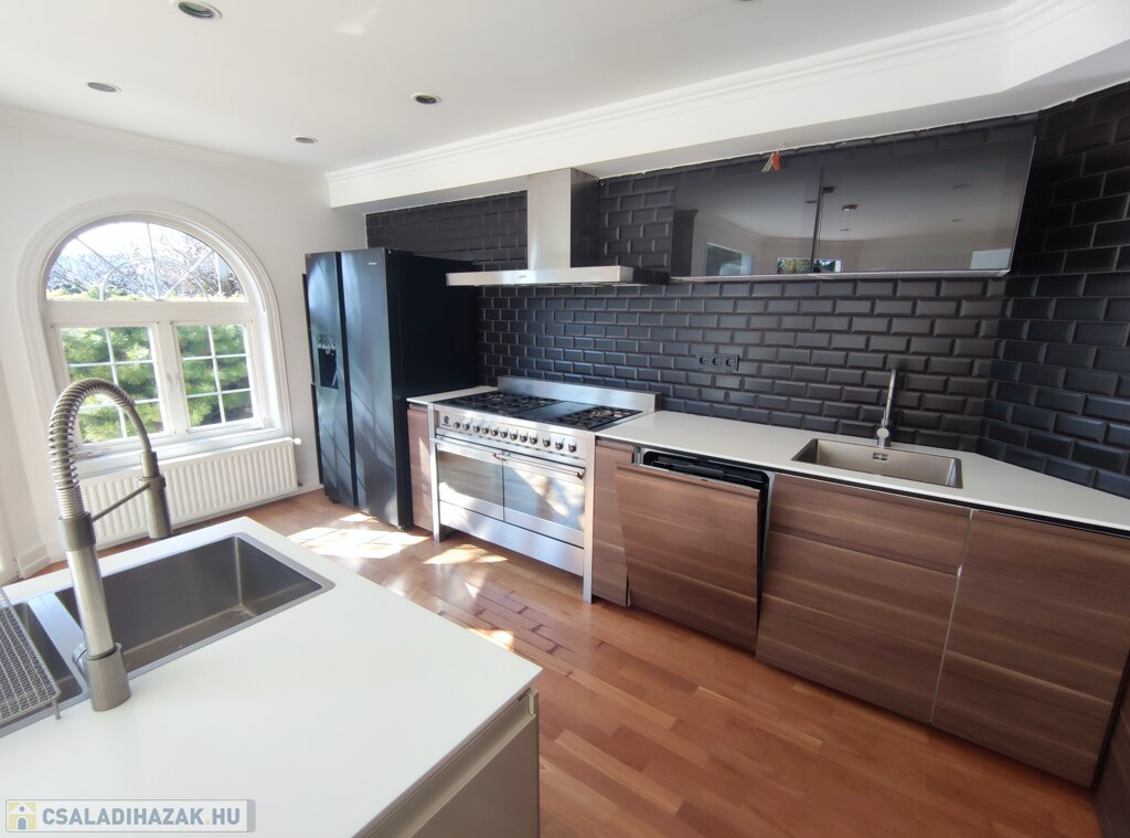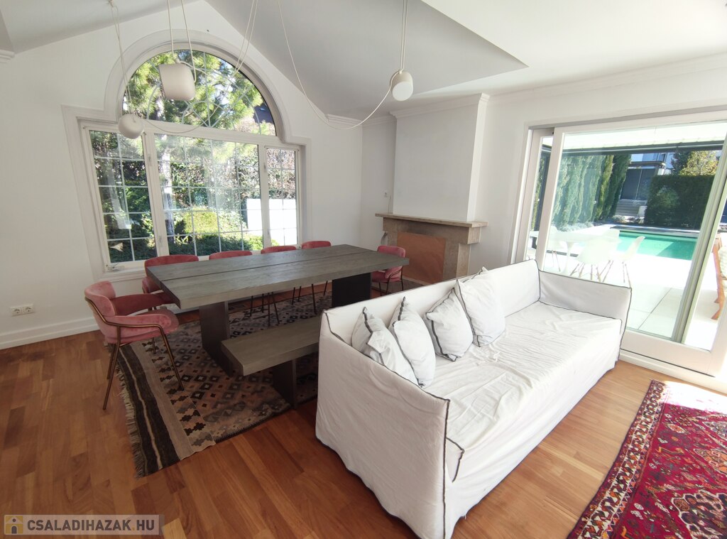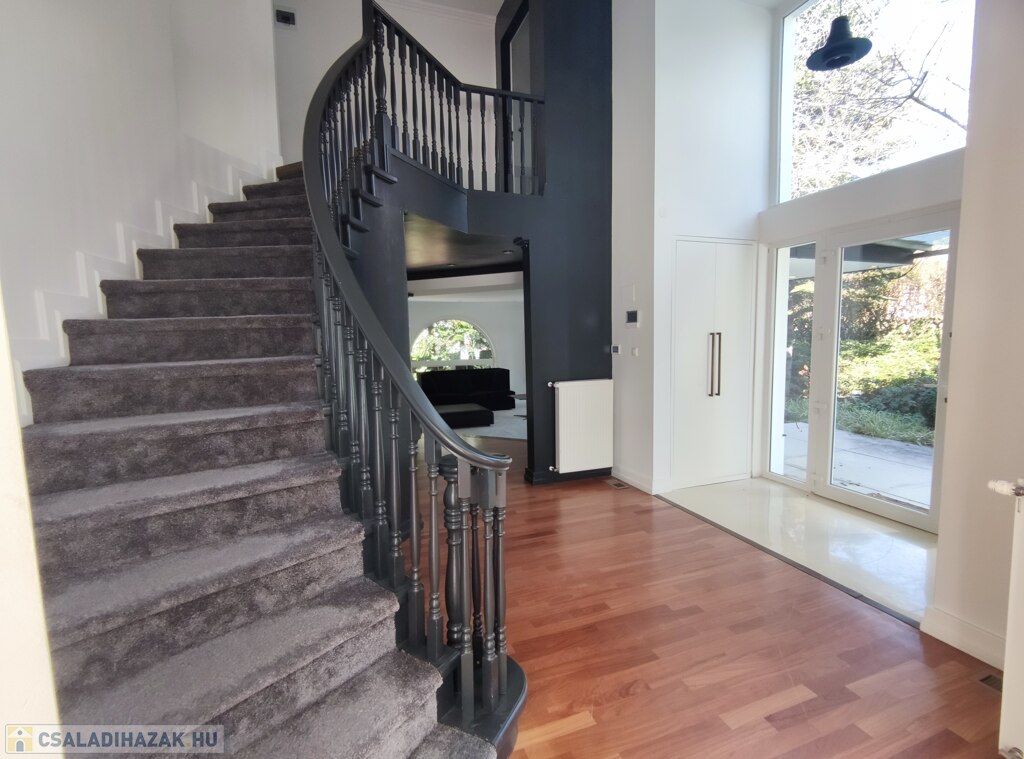 A csendes, intim telken a 2000-es évek elején épült 3 szintes, gyönyörű ház délkeleti fekvésű.  2019-ben a felújítás során tágas, üvegezett fedett teraszt/téli kertet építettek hozzá, fűthető medencét létesítettek, a szanitereket, beépített szekrényeket kicserélték.