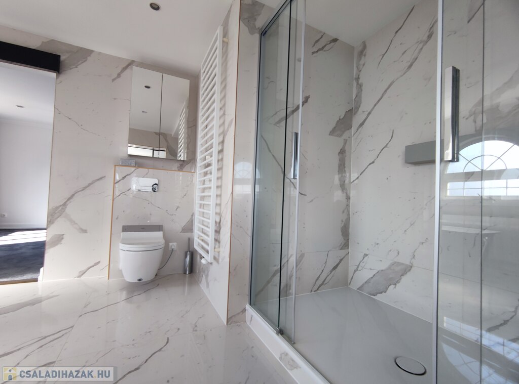 emelet: 3 külön bejáratú, légkondis hálószoba, 2 fürdőszoba, gardróbszoba, panoráma