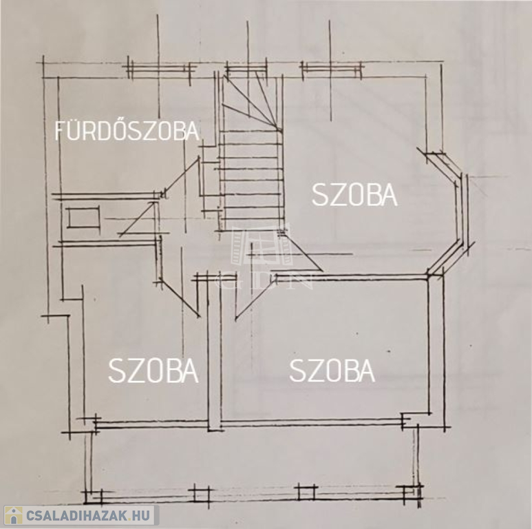 Az alsó szinten amerikai konyhás nappali, étkezővel, a felső szinten 3 napfényes szoba, fürdőszoba épült.