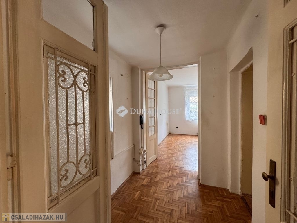 Parkolás jelenleg az utcán megoldott, de a ház előtti előkertben, autóbeálló is kialakítható.