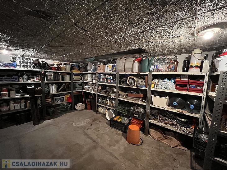 Parkolni a 22 négyzetméteres garázsban lehet, ami alatt található egy ugyanekkora méretű pince.